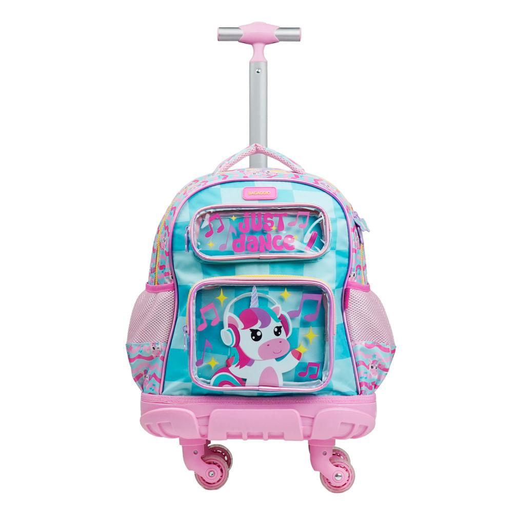Mochila de 4 Rodinhas Feminina Unicórnio Just Dance Verde Água