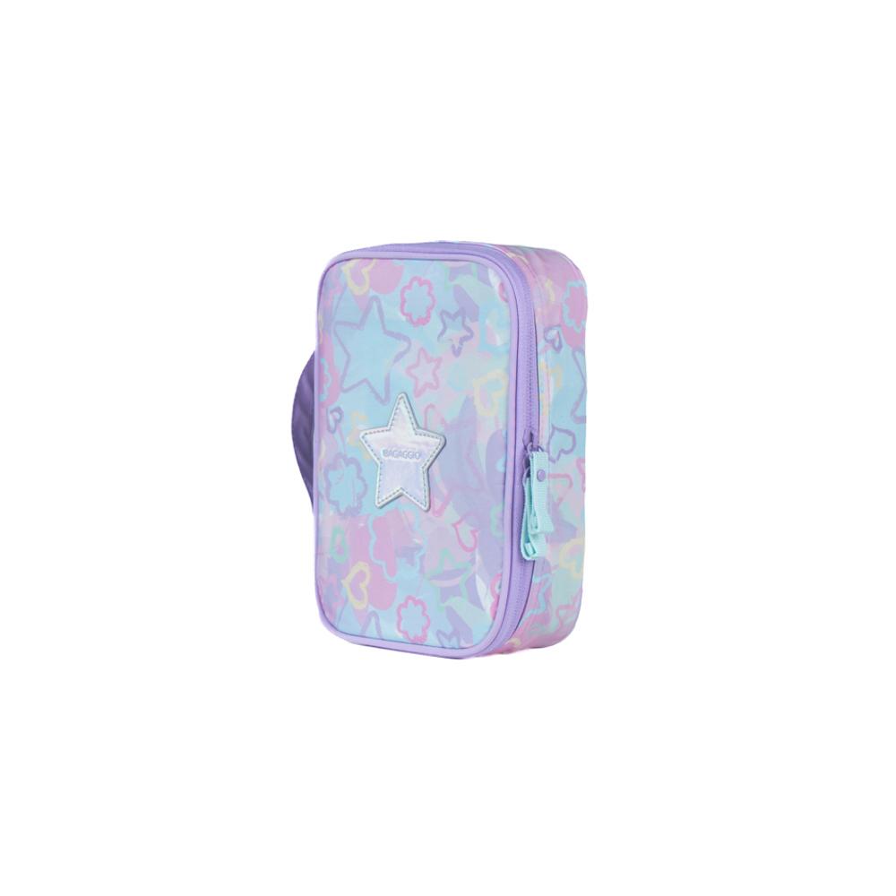 O Kit Escolar Star Candy Lilás é ideal para quem busca praticidade, conforto e um visual delicado e moderno no dia a dia escolar. Com design feminino em tom lilás e detalhes encantadores, é perfeito para o público juvenil.A mochila escolar oferece ótimo espaço interno para livros, cadernos e materiais, além de alças acolchoadas e ajustáveis, garantindo mais conforto durante o uso diário. A lancheira térmica ajuda a conservar os alimentos por mais tempo, ideal para a rotina escolar. O estojo box juvenil complementa o kit, proporcionando melhor organização de lápis, canetas e acessóriosEspecificações:Dimensões: Mochila 35 x 25,5 x 12 Cm | Lancheira 24 x 23 x 10 cmPeso: Mochila: 0,91 Kg | Lancheira: 0,23 KgMaterial:PoliésterCapacidade: Mochila 10,7 L | Lancheira 5,5 LGarantia: 90 diasFaixa etária: Juvenil (12+anos) Outros atributos:- Chaveiro personalizado removível. - Lancheira é térmica. - Três bolsos frontais pequenos. - Estojo com elásticos para organização de diversos materiais. - Alça carona.