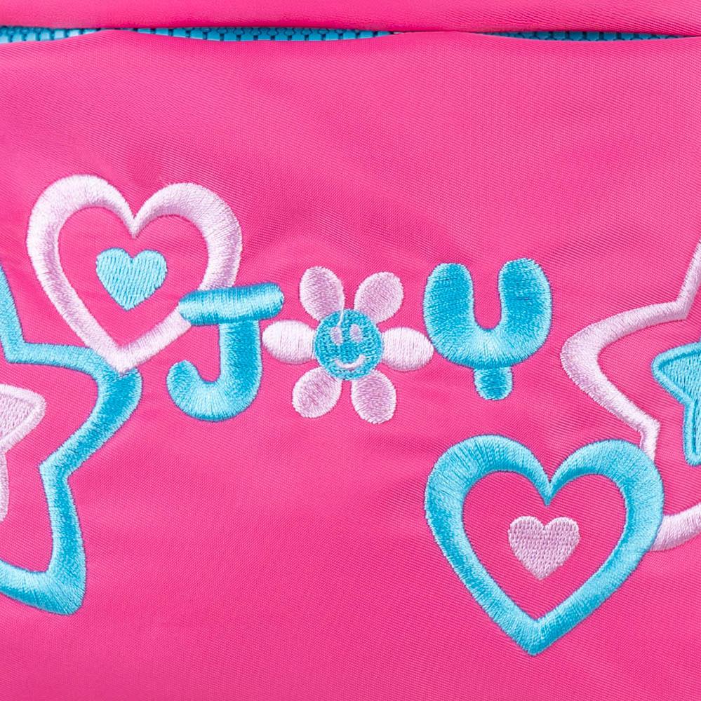 A Mochila BG Joy foi feita para meninas que gostam de cores, detalhes divertidos e cheios de personalidade. O modelo traz diferentes texturas, bordado frontal “JOY” e logo emborrachado, além de acessórios presos por mosquetões que podem ser trocados sempre que quiser.Possui três compartimentos com fechamento em zíper, porta notebook interno, bolsos laterais para garrafinha e bolso traseiro para itens de fácil acesso. As costas e alças acolchoadas e ajustáveis deixam o uso confortável quando carregada nas costas. A haste retrátil pode ser guardada e fechada por zíper, transformando a mochila em 2 em 1.As rodas de skate, além de personalizadas, garantem deslize fácil e deixam o modelo ainda mais estiloso para acompanhar a rotina escolar.Material: PoliésterTamanho: 49 x 33 x 22 cmPeso: 2,5Capacidade: 35,5 LGarantia: 90 diasFaixa etária: Infanto Juvenil (8 a 12 anos) Outros atributos: - Alças nas costas personalizadas. - Acessórios decorativos.- Rodas de skate personalizadas. - Bolso lateral para garrafa.