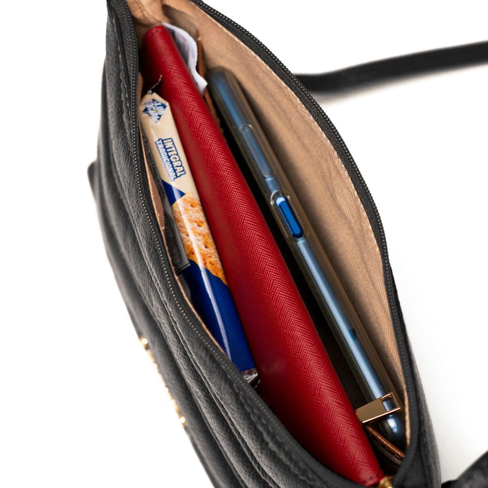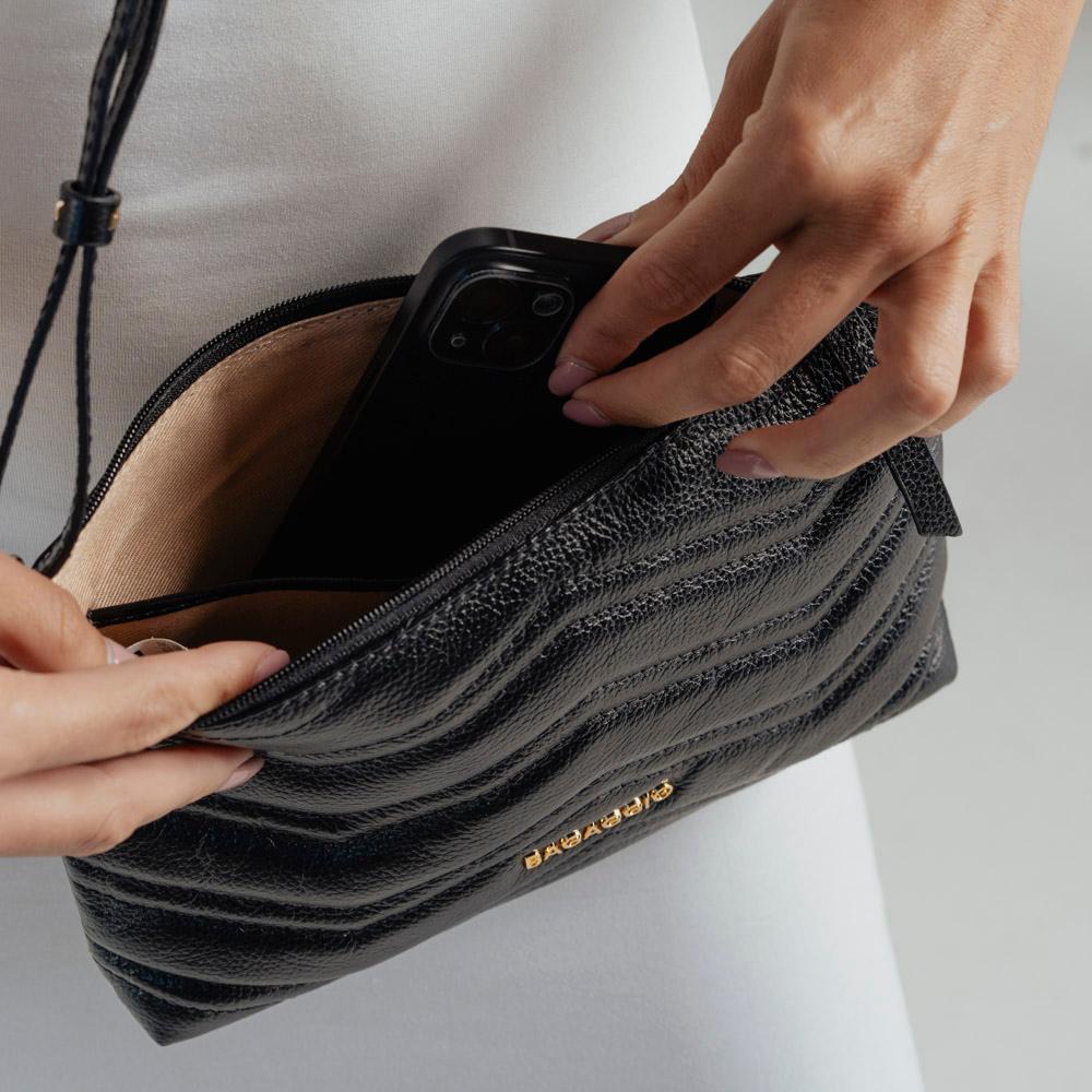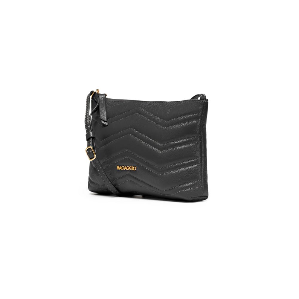Bolsa Transversal Feminina de Couro Zig Zag Matelasse Pequena Preta