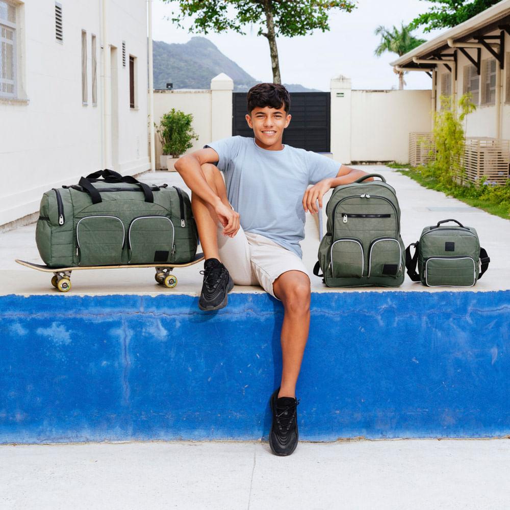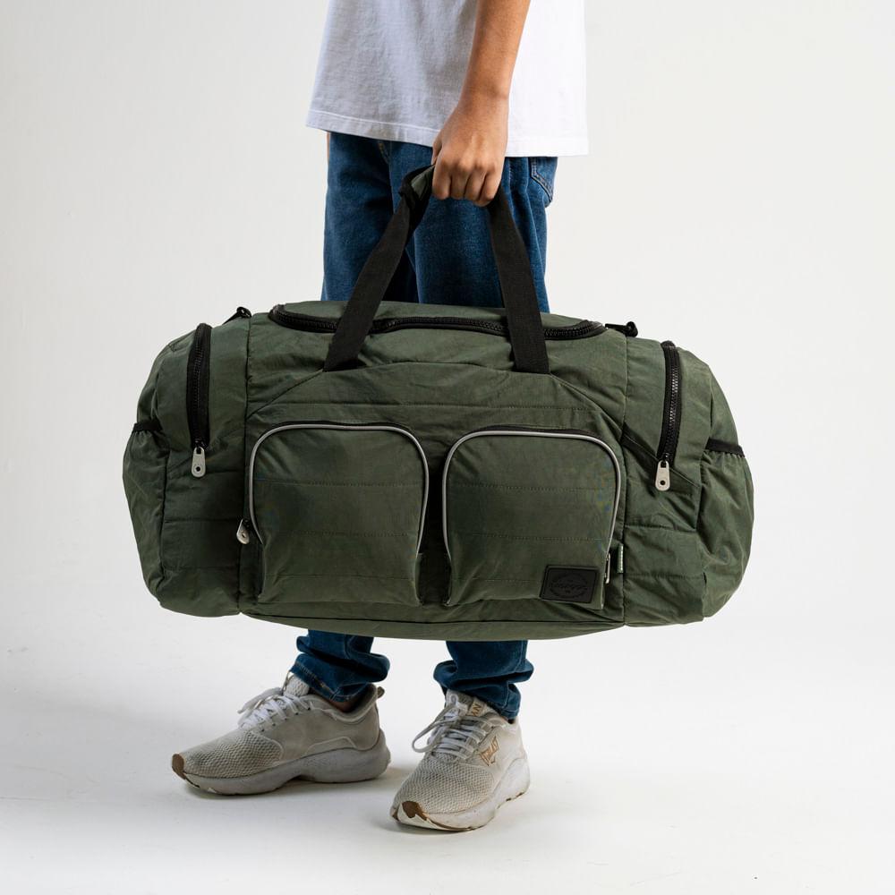 Bolsa de Viagem Color Block Bolso Duplo Frontal Verde Escuro