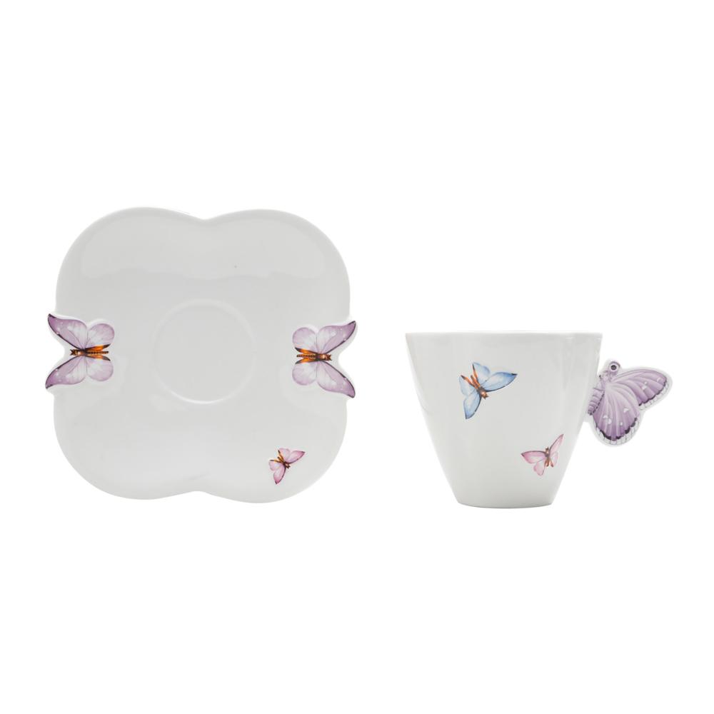 6 Xícaras de Chá Wolff Borboletas de Porcelana 200ml
