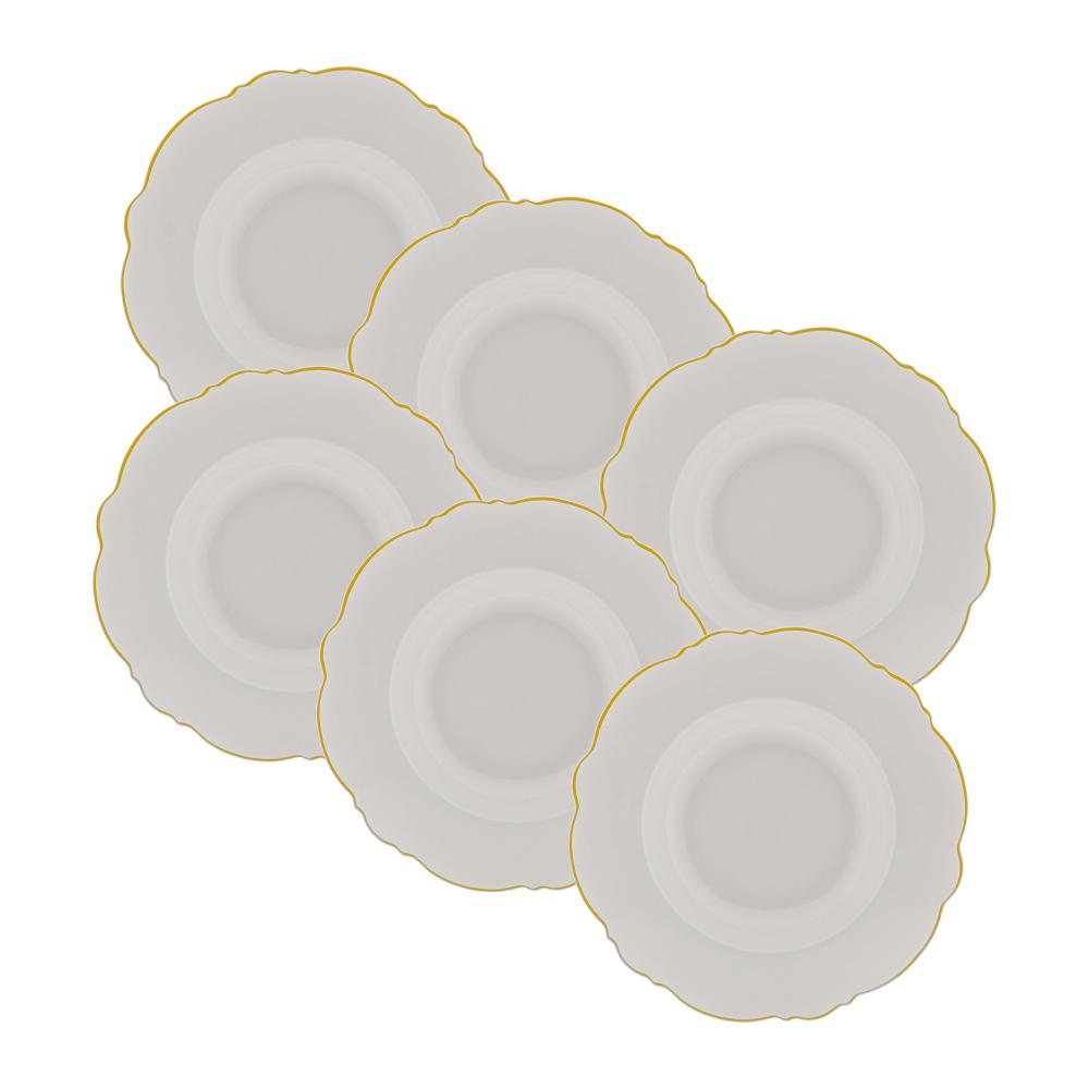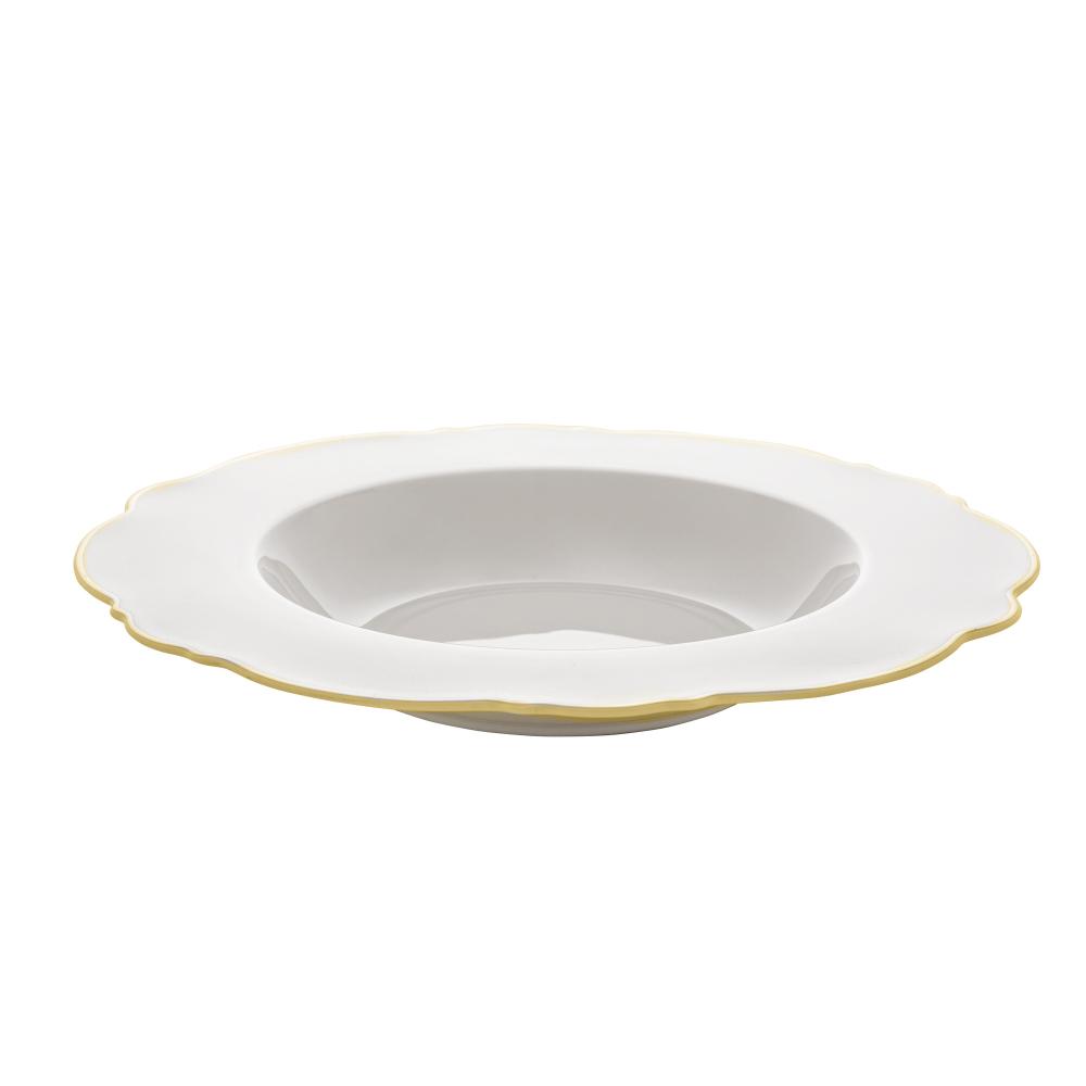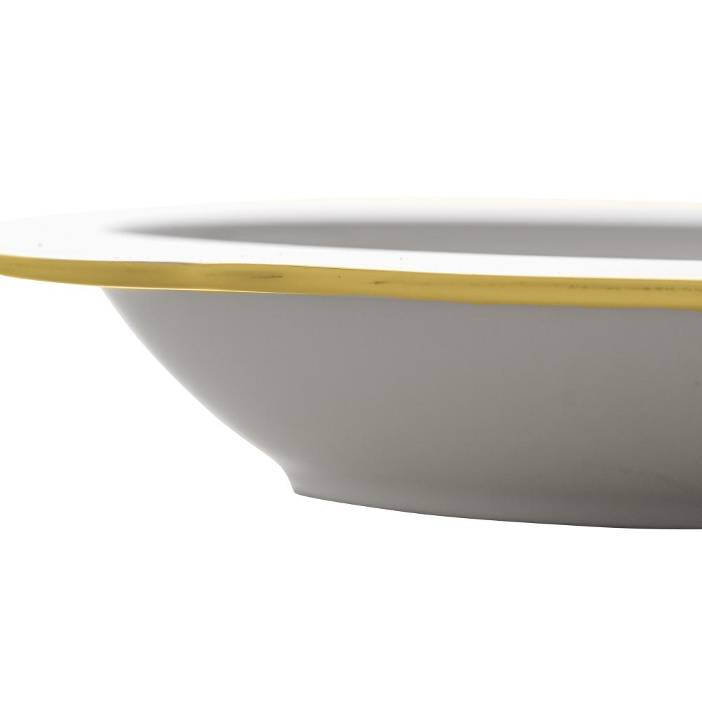6 Pratos Fundos Wolff Maldivas de Porcelana Fio de Ouro 23cm