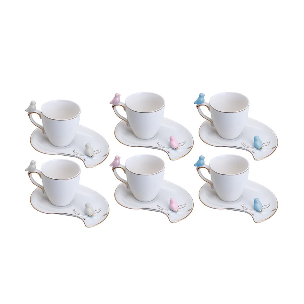 6 Xícaras de Café Wolff Cute Birds de Porcelana 90ml