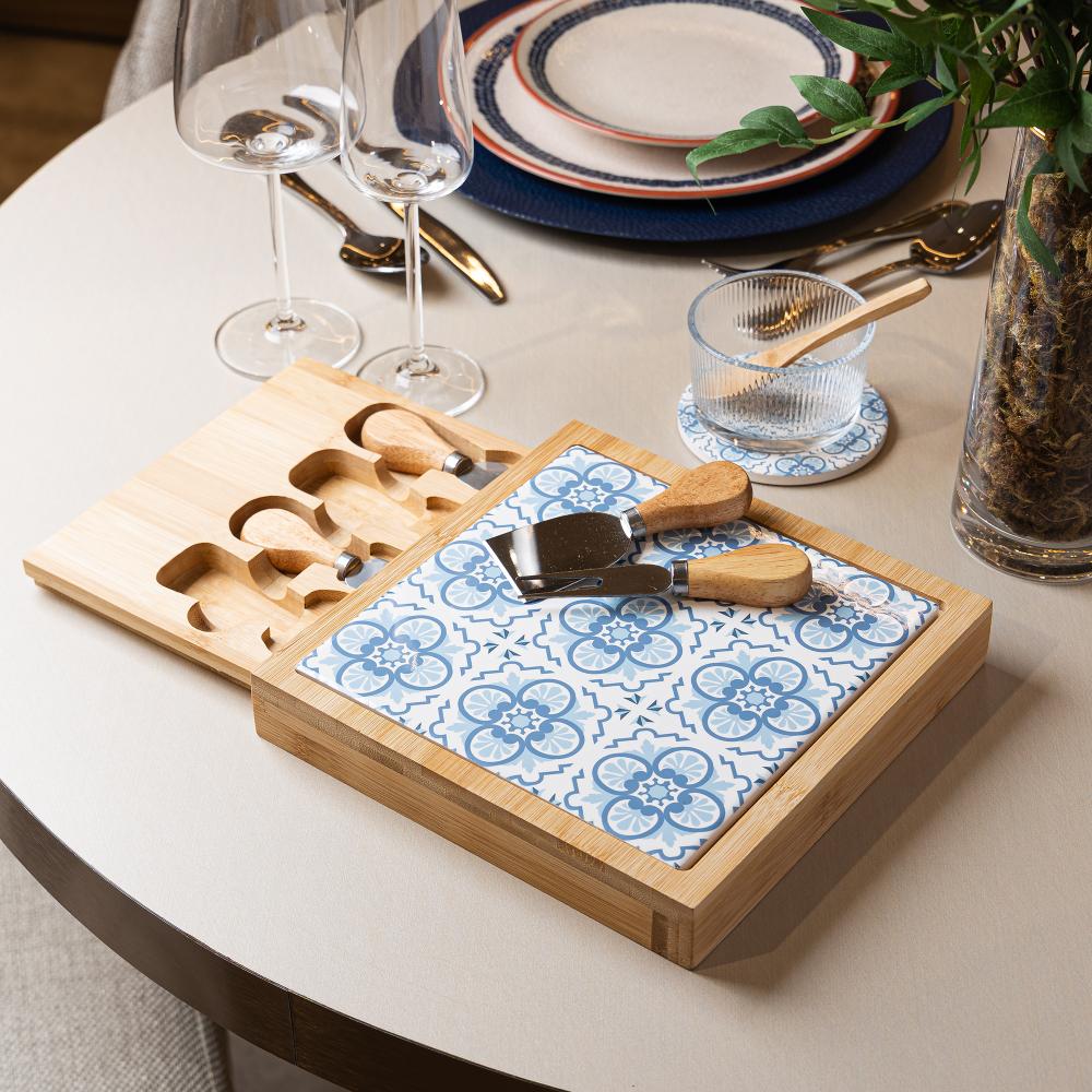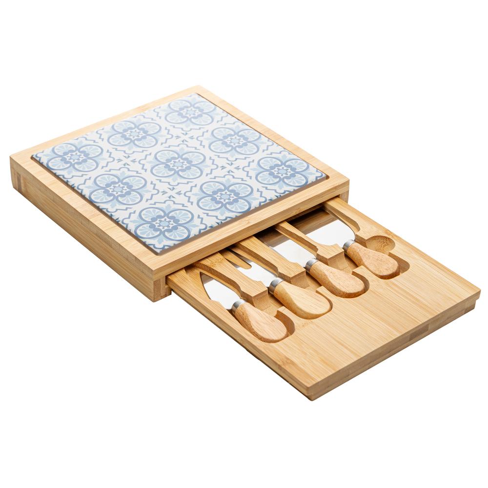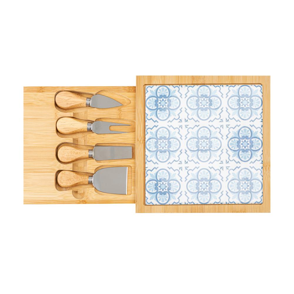 6 Peças para Queijo Tábua com Gaveta Mosaico 23cm x 23cm x