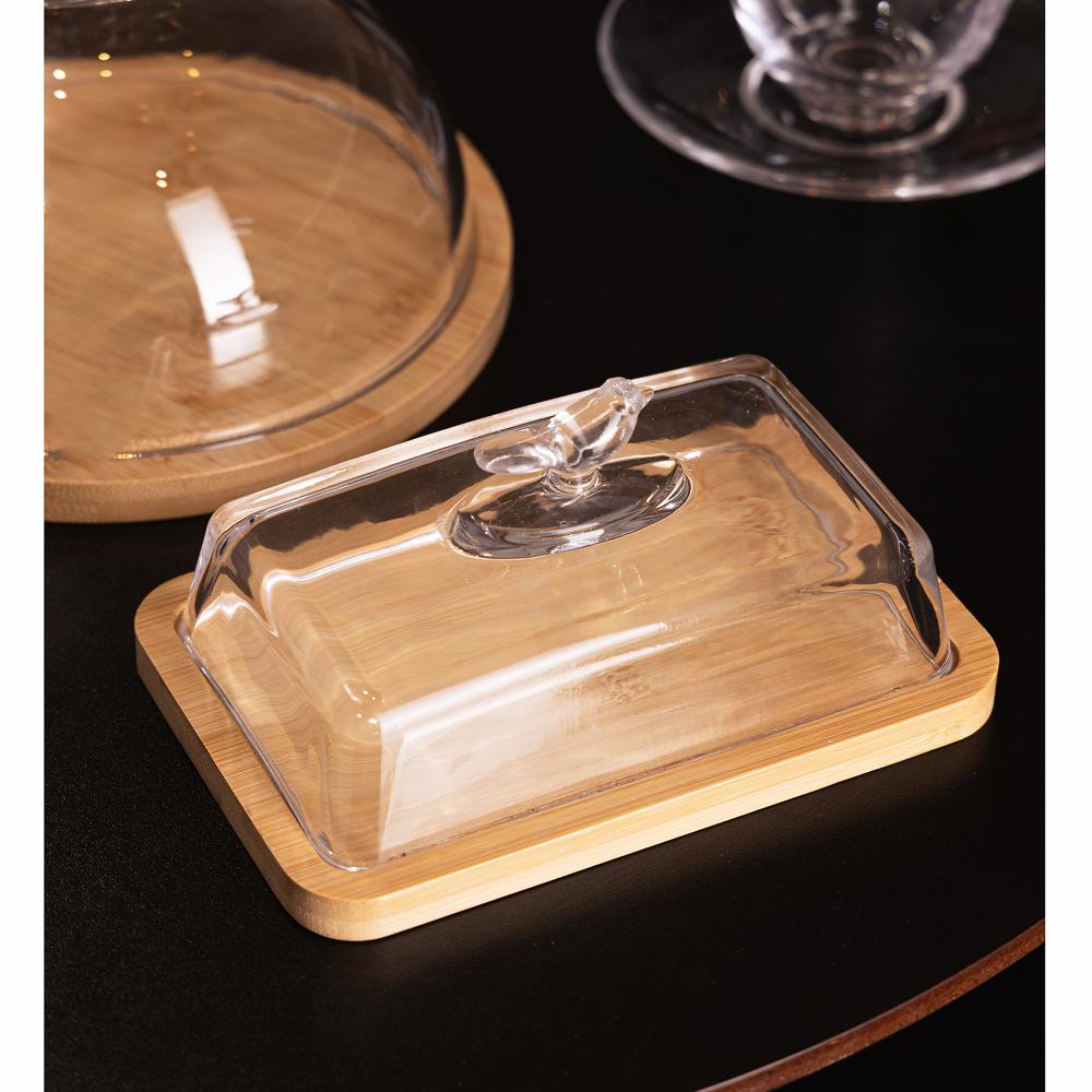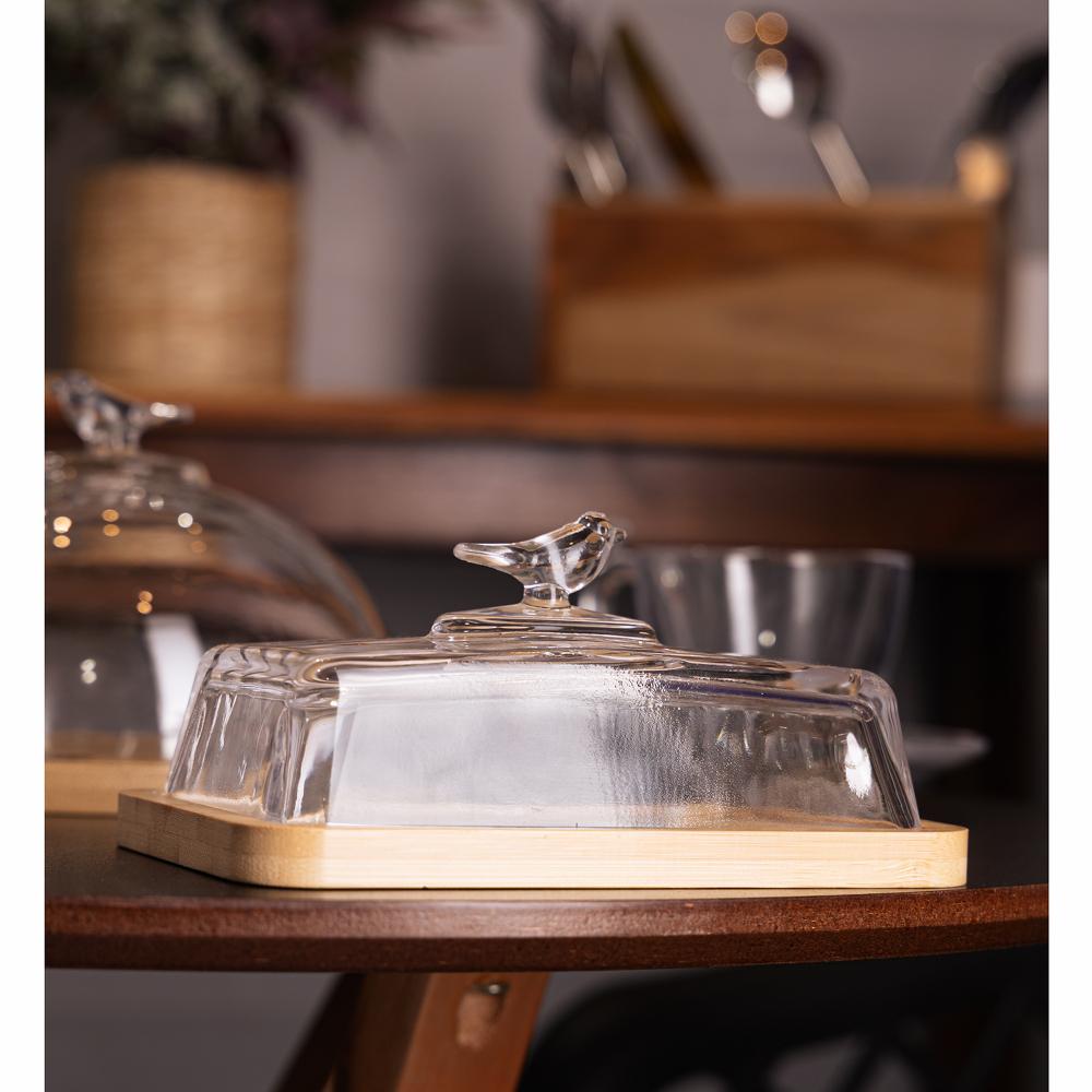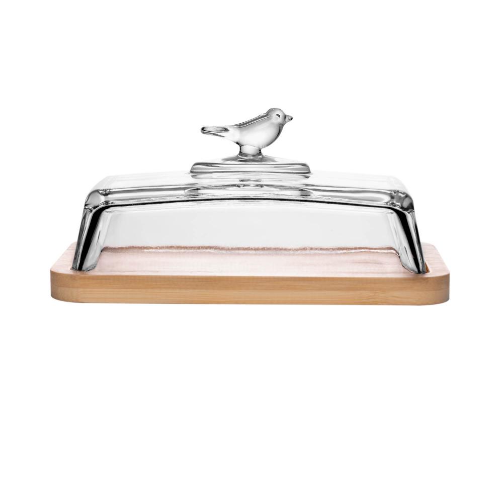 Manteigueira com Base em Bambu Wolff Bird com Tampa Vidro