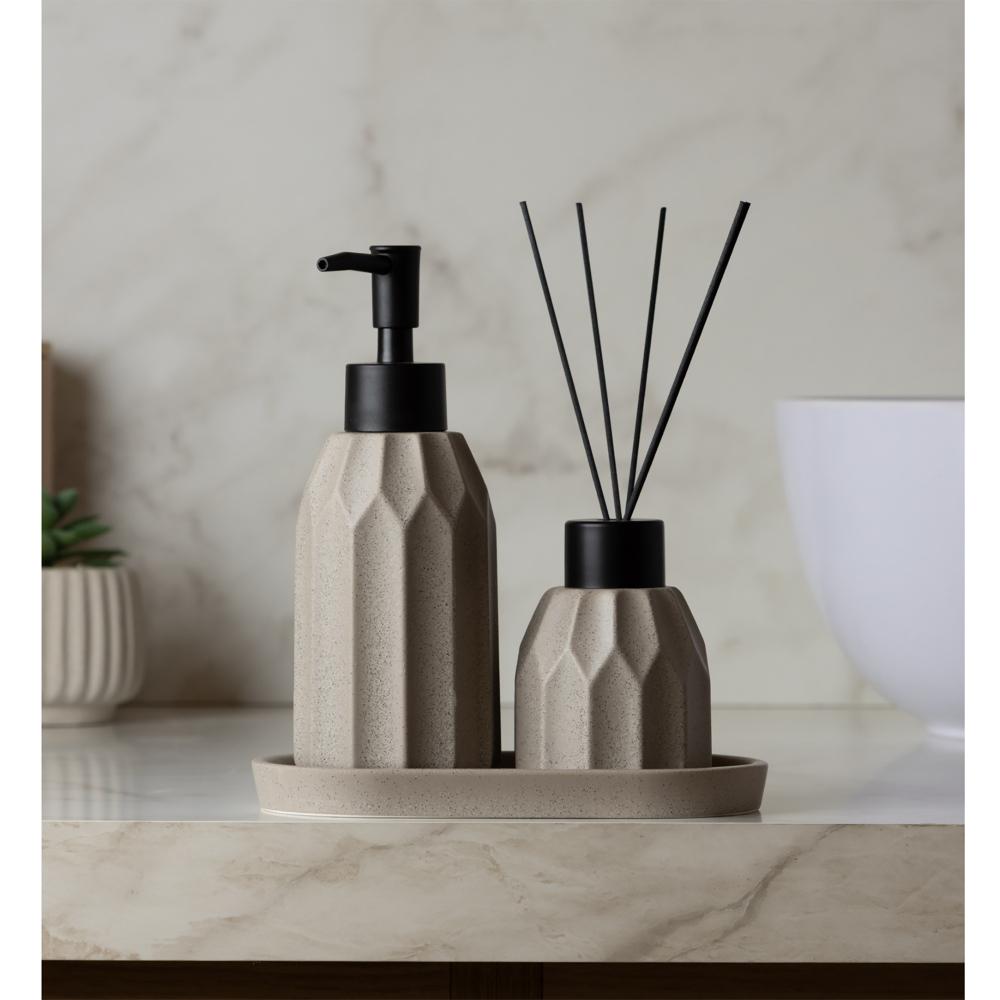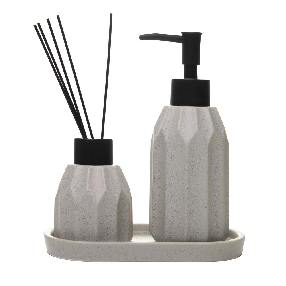 3 Peças para Banheiro Wolff Aromatta Cinza CerâmicaConjunto 3 Peças para Banheiro Aromatta 290ml Cinza Cerâmica - WolffConjunto 3 Peças para Banheiro Aromatta 290ml Cinza Cerâmica - WolffSofisticação e Praticidade para o Seu BanheiroO Conjunto Aromatta combina design elegante e funcionalidade. Com tonalidade cinza e acabamento refinado, adapta-se a diferentes estilos de decoração, deixando o ambiente mais sofisticado e acolhedor.Material de Alta QualidadeProduzido em cerâmica premium, garante durabilidade e resistência, preservando sua beleza por mais tempo.Três Itens Essenciais para o Seu AmbientePorta Sabonete Líquido – Capacidade de 290ml, ideal para o uso diário.Difusor – Perfeito para espalhar fragrâncias e criar um ambiente mais aconchegante.Bandeja – Além de complementar o conjunto, mantém tudo organizado com estilo.Renove seu banheiro com a qualidade e o design exclusivo da Wolff.WOLFF – Construindo memórias e eternizando momentos.Contém: 1 Porta Sabonete Líquido1 Difusor1 BandejaMedidas Produto: Altura 18,50cm x Largura 8,60cm x Comprimento 16,50cmPeso: 0,46KgLavar com detergente neutro, esponja macia e secar imediatamente.