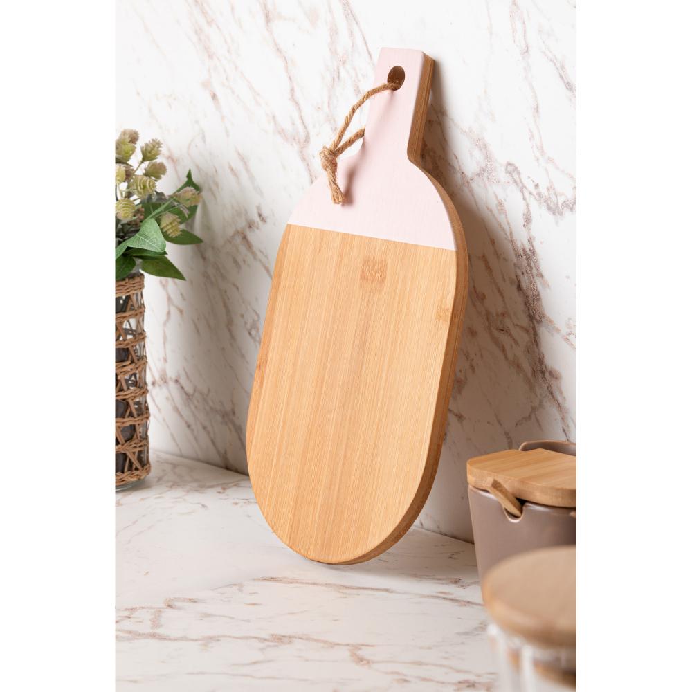 Tábua para Corte Oval Cabo Lignora 35 x 18 x 1cm Rosa Bambu