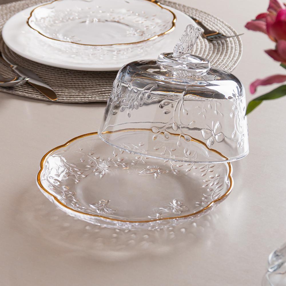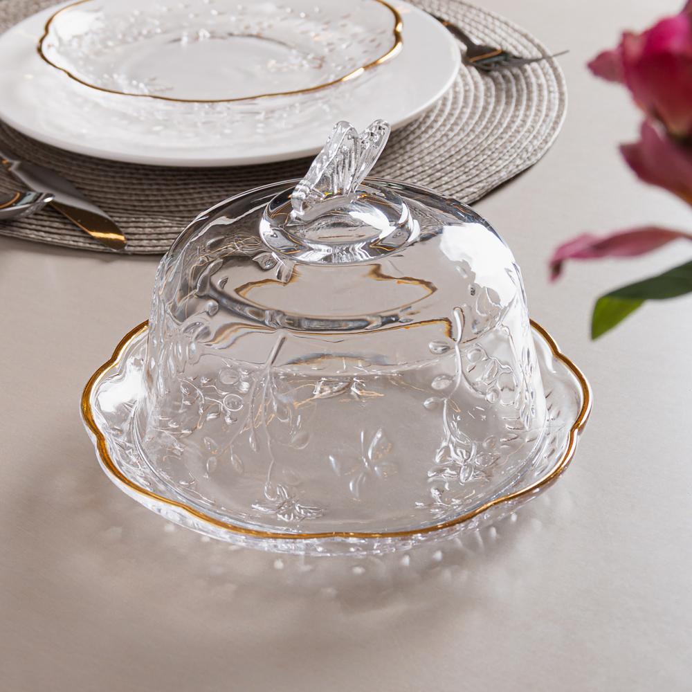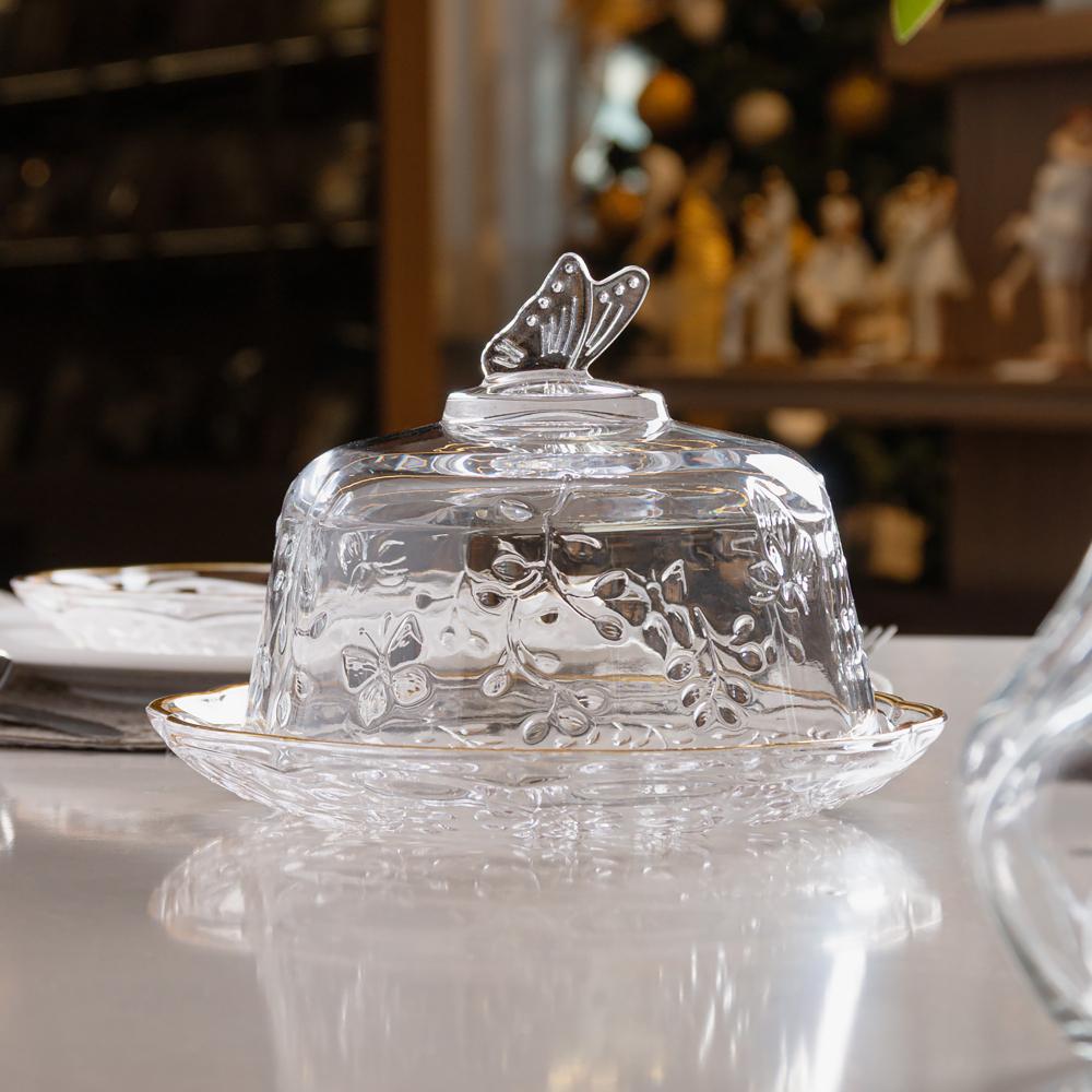 Queijeira com Tampa New Butterfly e Fio de Ouro Lyor Cristal