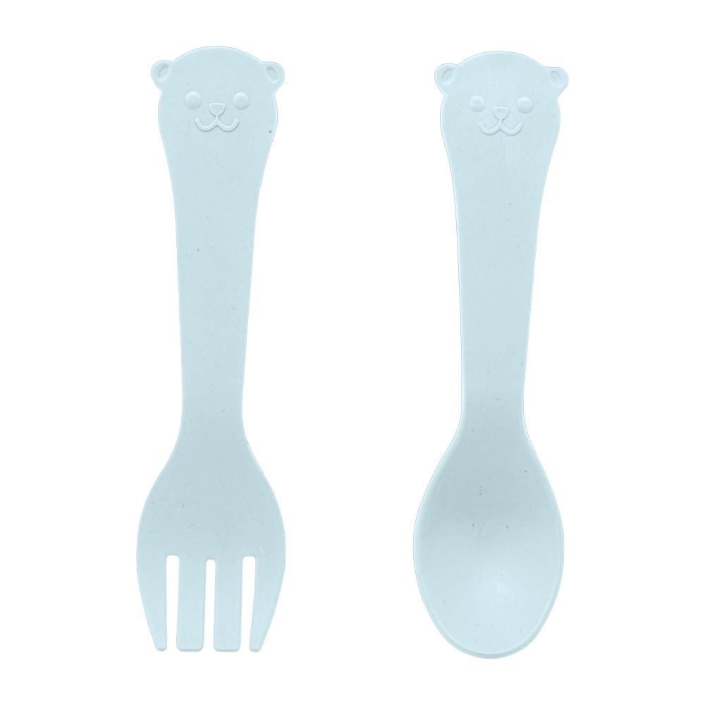 Prato com 2 Talheres Lyor Baby Bear PP e Bambu Azul
