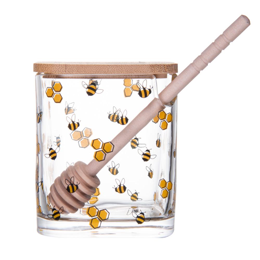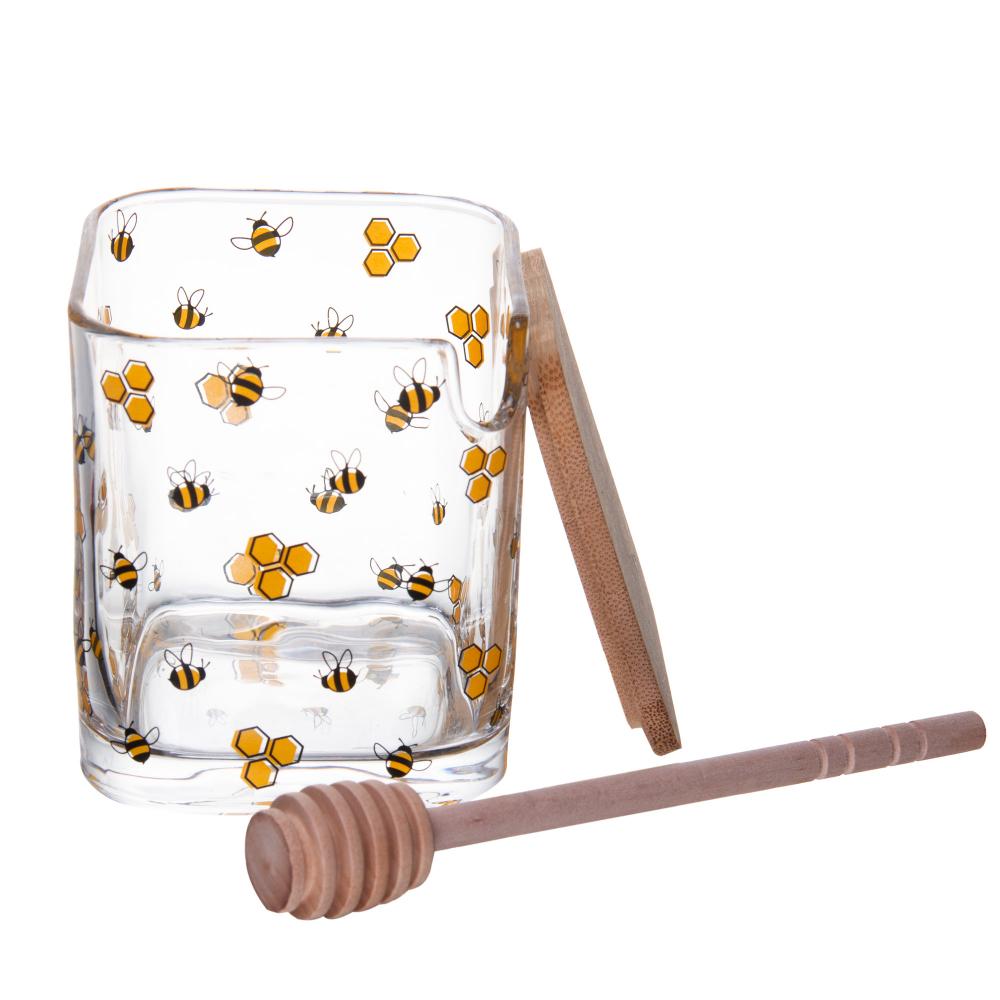 Meleira com Tampa e Pegador Bambu Bee Lyor 8cm x 9,5cm Vidro
