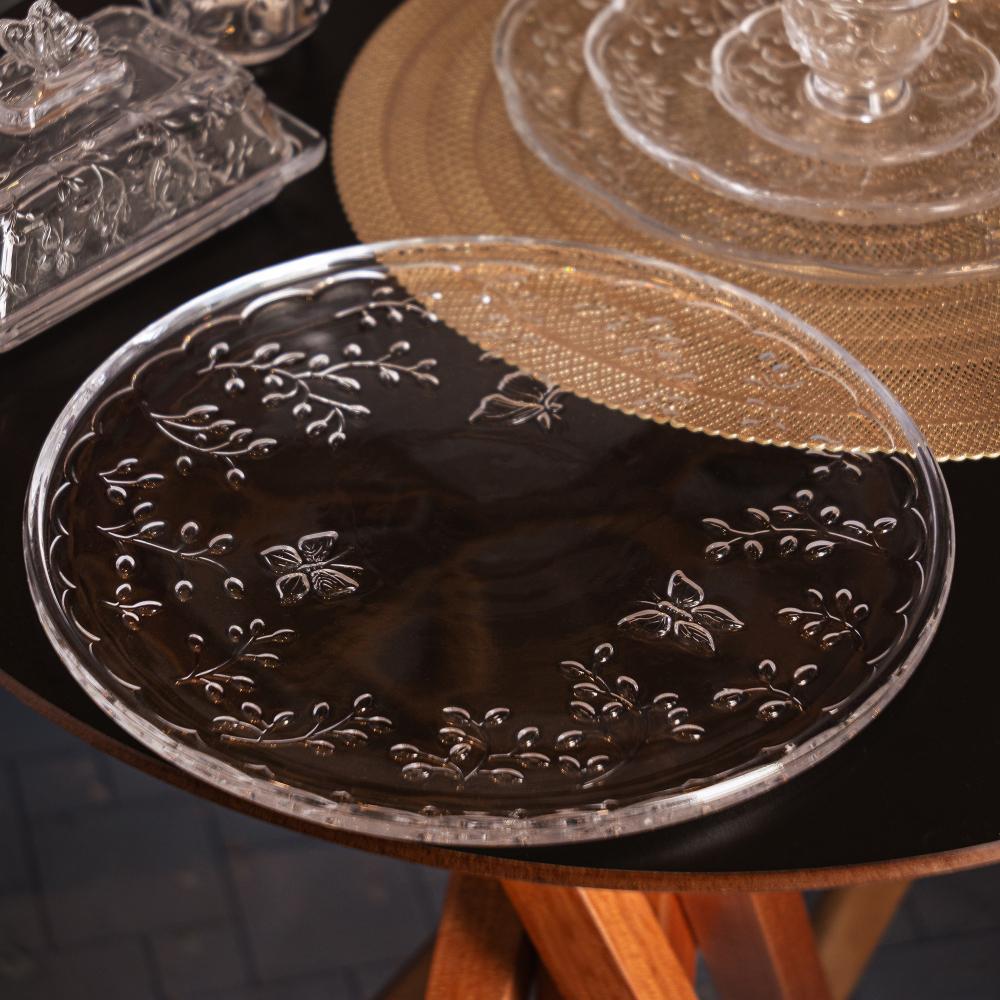 Prato para Bolo New Butterfly 30cm x 30cm x 1,2cm Cristal