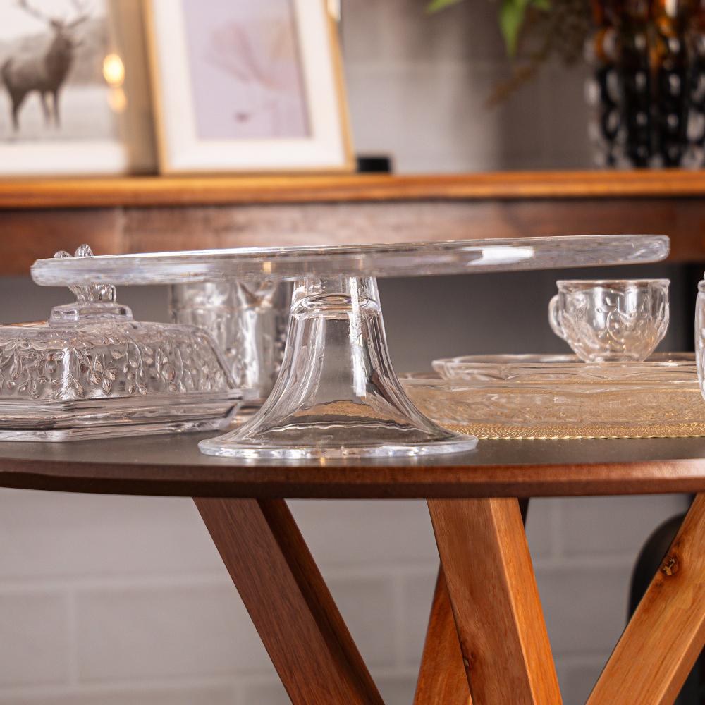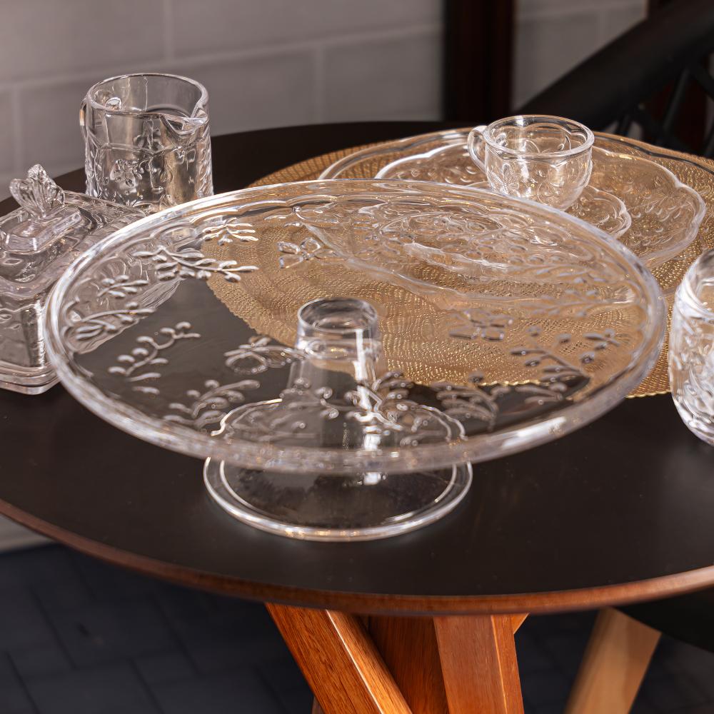 Prato para Bolo com Pé New Butterfly 30cm x 11,5cm Cristal