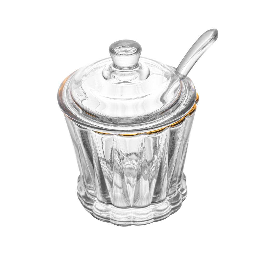 Açucareiro com Colher e Tampa Radial Fio de Ouro 210ml