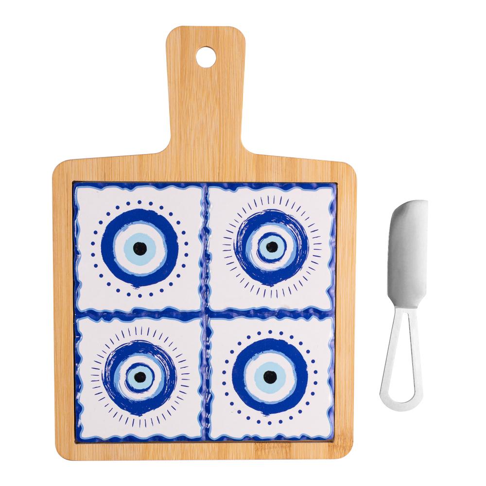 3 Peças para Queijo Bandeja Faca Tábua Lyor Greek Bambu