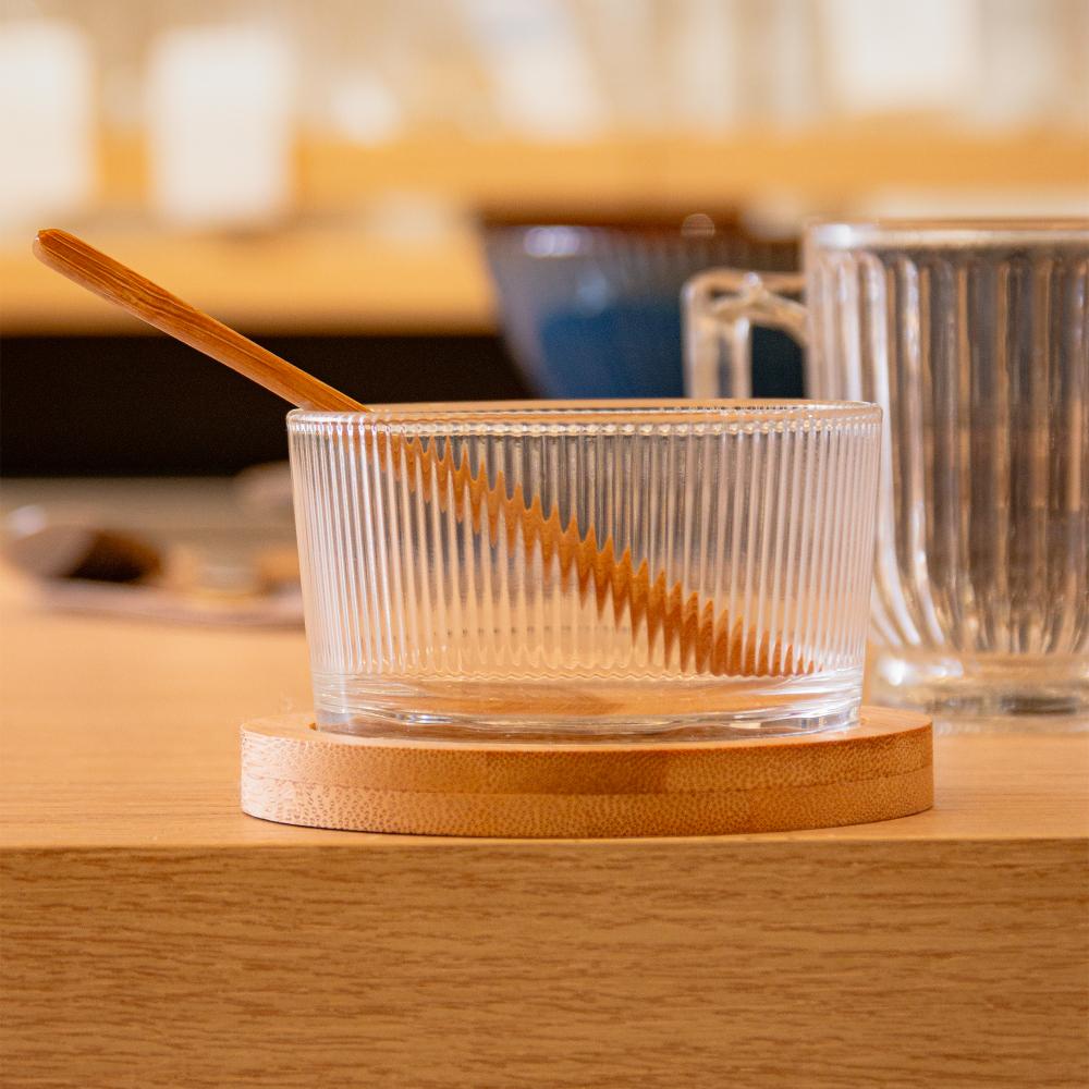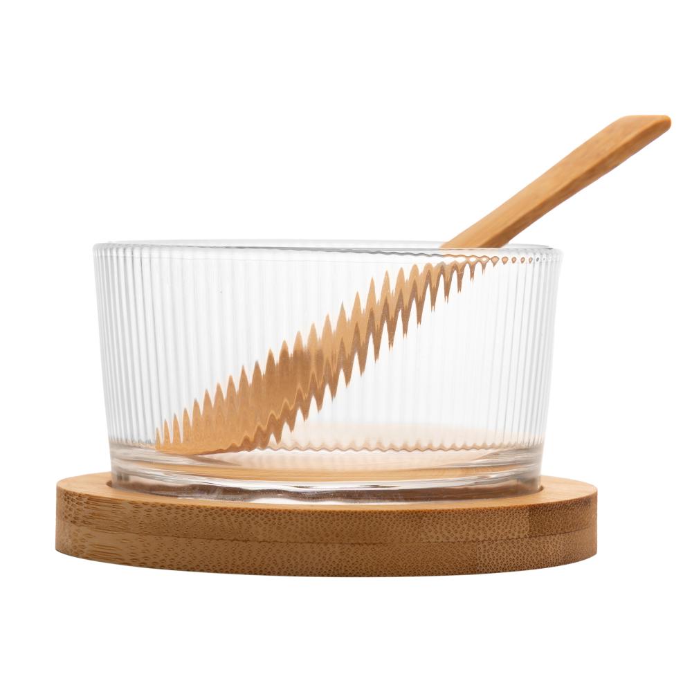 Petisqueira Redonda Lyor Stripes colher bambu suporte Vidro