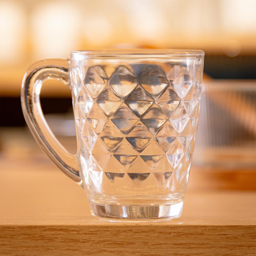 Caneca Diamond 90ml Vidro LyorPequenas doses de elegância. A caneca Diamond 90ml da Lyor, com seu design facetado, traz brilho e personalidade até aos momentos mais rápidos, como o seu espresso diário.Pequenas doses de elegância. A caneca Diamond 90ml da Lyor, com seu design facetado, traz brilho e personalidade até aos momentos mais rápidos, como o seu espresso diário.• Vidro de alta qualidadeBrilho intenso e resistência ao uso.• Lapidação refinadaEstilo que valoriza cada detalhe.• Tamanho idealPerfeita para cafés curtos ou bebidas degustativas.• Versatilidade de usoUm charme a mais em qualquer mesa posta.Lyor transforma pequenos momentos em experiências cheias de estilo.Contém: 1 Caneca Diamond 90mlMedidas Produto: Altura 7,30cm x Largura 5,50cm x Comprimento 8,00cmPeso: 0,12KgLavar com detergente neutro, esponja macia e secar imediatamente.