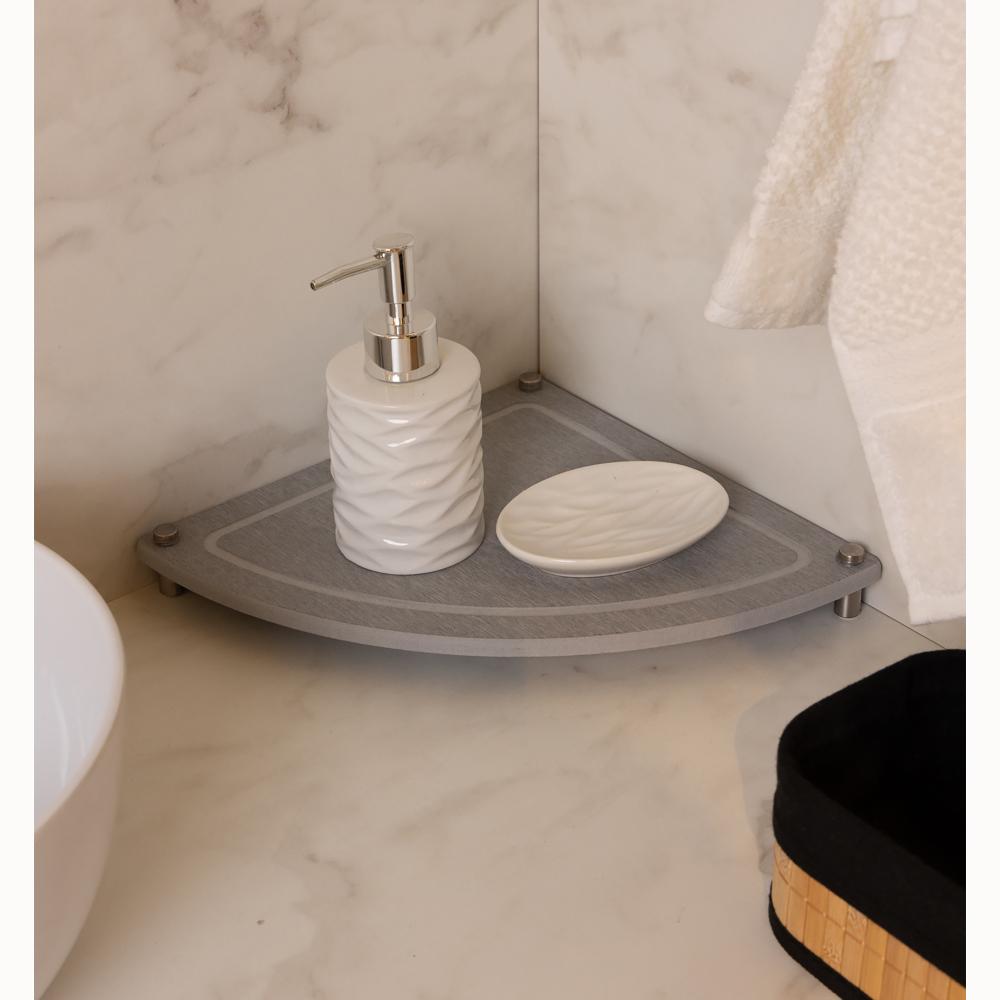 Organizador Canto com Pé Absorvente para Pia Pedra DiatomitaMantenha a sua pia sempre seca e organizada. Este Organizador de Canto possui uma base de pedra diatomita que absorve a água que escorre de esponjas e frascos, acabando com as poças de água na bancada.Mantenha a sua pia sempre seca e organizada. Este Organizador de Canto possui uma base de pedra diatomita que absorve a água que escorre de esponjas e frascos, acabando com as poças de água na bancada.Base que absorve a águaA plataforma de diatomita suga a umidade de esponjas, detergentes e outros itens, secando naturalmente e evitando a bagunça.Design inteligente para cantosO formato triangular aproveita o espaço do canto da pia, uma área geralmente pouco utilizada.Pés que elevam a peçaOs pés de metal mantêm a base de pedra elevada, permitindo a circulação de ar e acelerando a secagem.Estrutura para organizarA grade de metal serve de apoio para organizar frascos, escovas e outros utensílios, mantendo tudo no lugar.LyorSoluções completas para o seu lar.Contém: 1 Organizador de CantoMedidas Produto: Altura 1,00cm x Largura 25,00cm x Comprimento 25,00cmPeso: 0,45KgLimpar com pano úmido.
