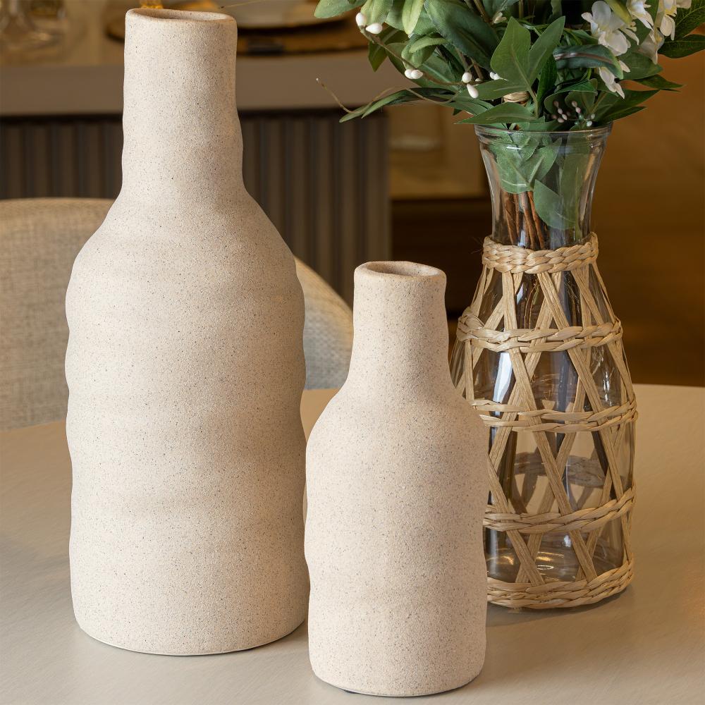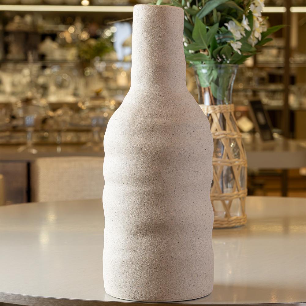 Vaso Doha 11,5cm x 11,5cm x 31cm Bege Cerâmica Wolff