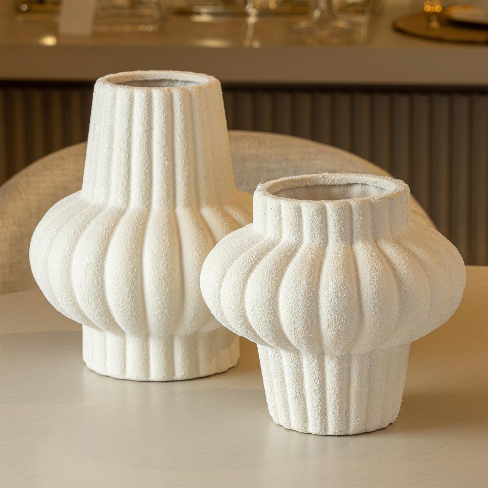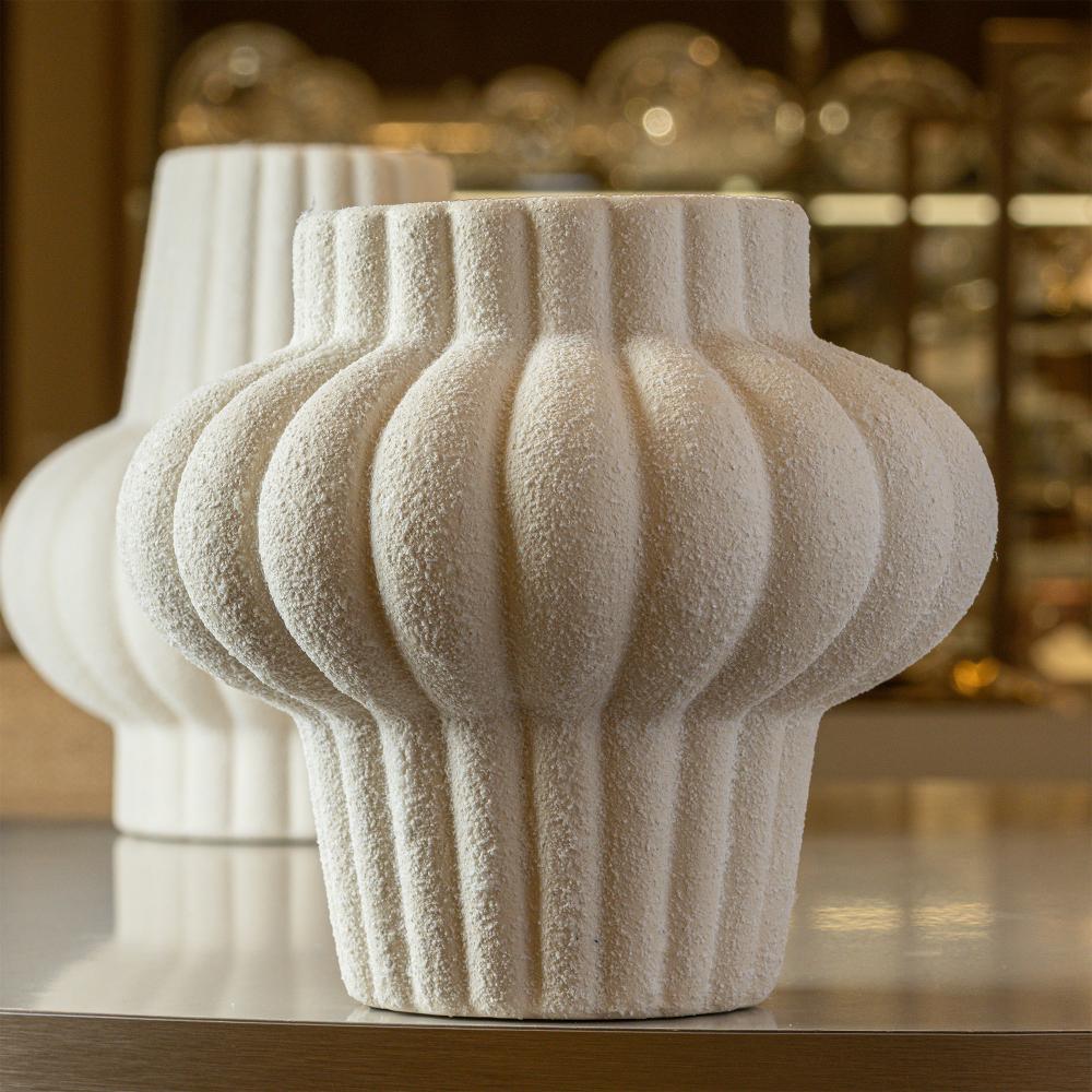 Vaso Pilar Ondulado 18,5cm x 18,5cm x 17cm Branco Cerâmica