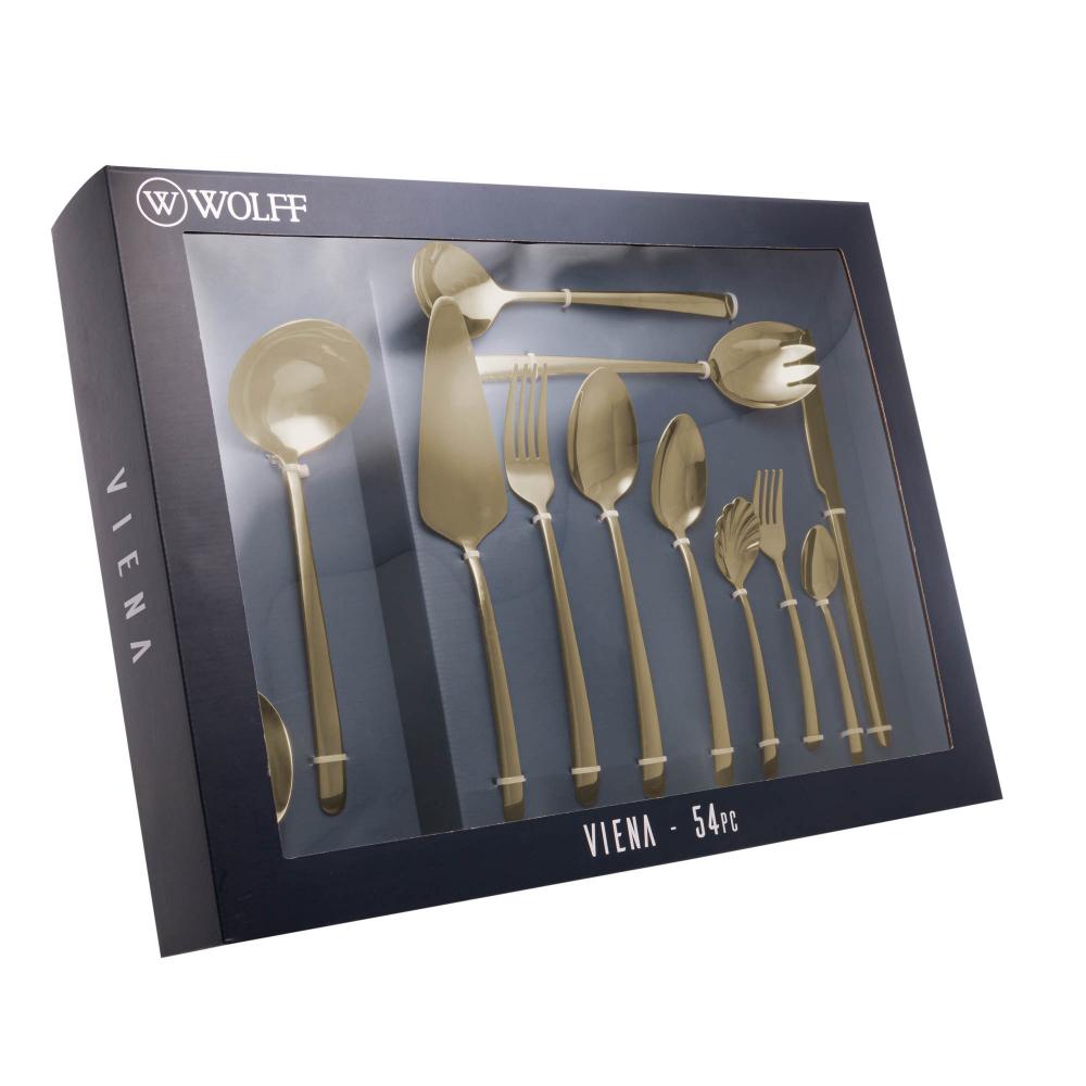 Faqueiro Wolff Viena 54 Peças de Aço Inox Dourado