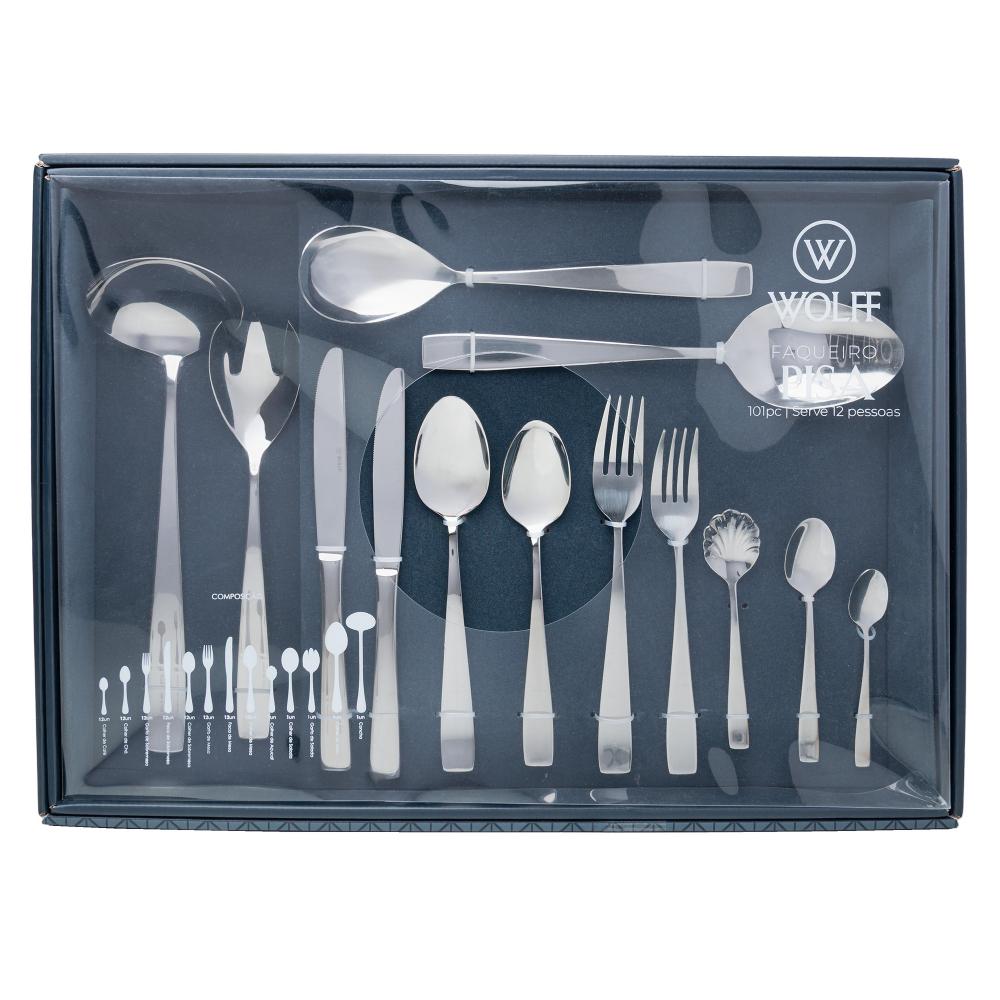 Faqueiro 101 Peças Wolff Pisa de Aço Inox com Caixa Litograf