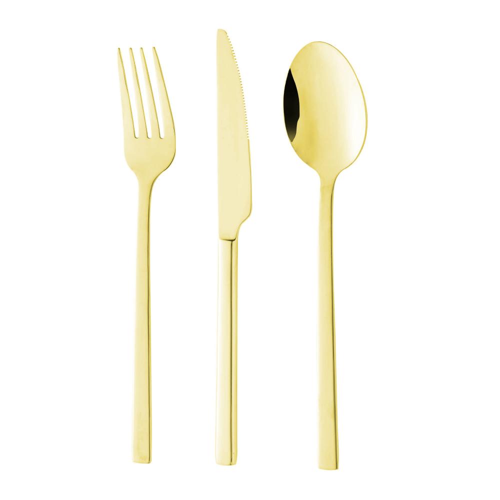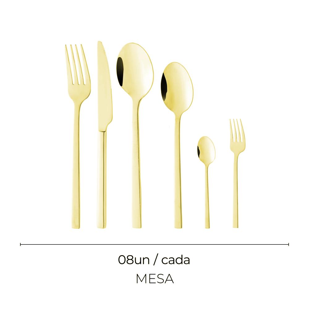 Faqueiro 54 Peças Wolff Firenze de Aço Inox Dourado Contém: "FACA DE MESA 8PCSCOLHER DE MESA 2.2mm 8UNSGARFO DE MESA 2.5mm 8PCSGARFO PARA BOLOS 1.8mm 8PCSCOLHER DE CHÁ 1.8mm 8UNSCOLHER DE CAFÉ 1.8mm 8UNSCONCHA DE SOPA 2.5mm 1UNCOLHER DE SERVIR 2.5mm 1UNCOLHER DE SALADA 2.5 1UN GARFO DE SALADA 2.5mm 1UNCOLHER DE AÇÚCAR 1.8mm 1UNSERVIDOR DE BOLOS 2.5mm 1PC"Forno: NãoFogão: NãoMedidas Produto: Altura 7,50cm x Largura 33,00cm x Comprimento 43,00cmPeso: 2,67KgCor: DouradoMaterial: Aço InoxLavar com detergente neutro, esponja macia e secar imediatamente. Não utilizar outros produtos químicos.