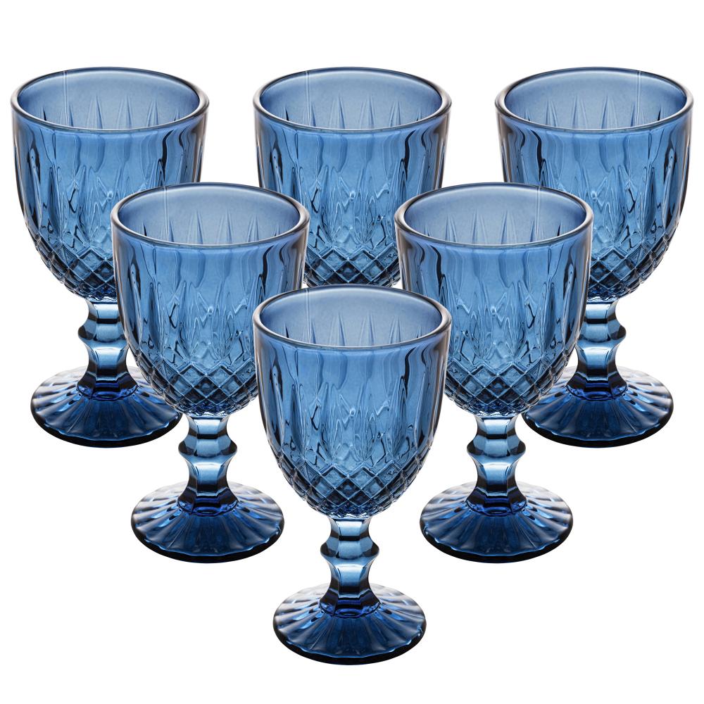 6 Taças de Água Greek 320ml Azul Vidro Wolff