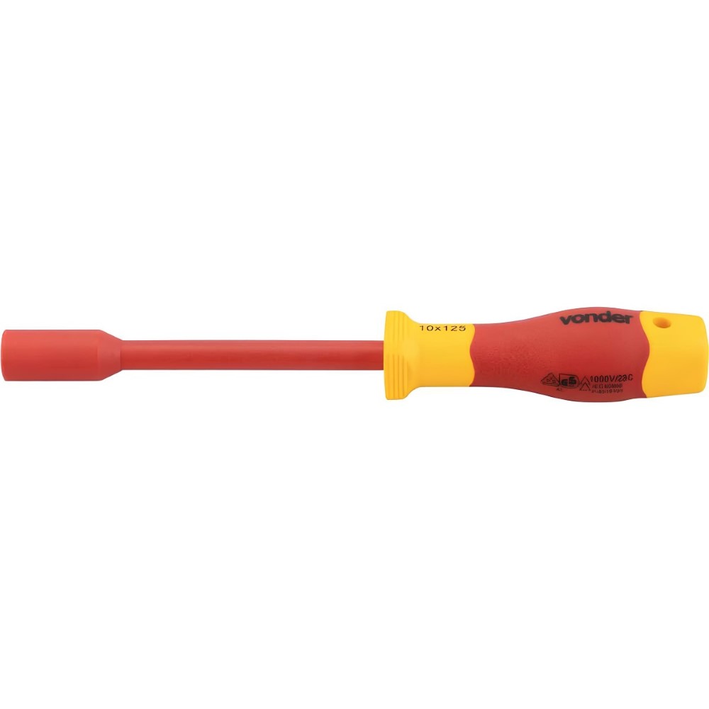 Chave Canhão 10 mm Vonder Isolada Cromo Vanádio VDE 1000V Sextavada Aço CrV Cabo PP/TPE Emborrachado