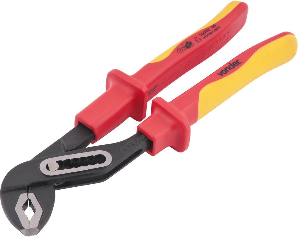 Conteúdo Embalagem:1 Alicate bomba d'águaDestaques e diferenciais:Atende a norma internacional EN/IEC 60900:2004. Possui cabo antiderrapante isolado para 1.000 V e com abas de proteção, proporcionando melhor manuseio e segurança ao operador. Testado individualmente. Aplicações e dicas de uso:Indicado para fixar e soltar tubos, torneiras, registros, entre outrosCaracterísticas Técnicas:Comprimento total do alicate: 250 mm Material do corpo do alicate: Aço cromo vanádio Capacidade de abertura: 30 mm Acabamento do alicate: Fosfatizado Tipo do ajuste do alicate bomba d'água: Furos Tipo do cabo do alicate.: Cabo em polipropileno (PP), revestido de borracha termoplástica (TPE) isolado VDE 1000 VGarantia:Garantia legal: 90 dias