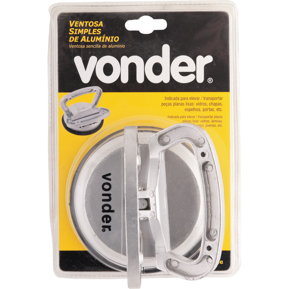 Conteúdo da embalagem1 VentosaAplicações e dicas de usoIndicada para elevar e transportar peças planas com superfície lisa, como: vidros, espelhos, cerâmicas, entre outrasDestaques e diferenciaisFacilita o transporte de peças planas e lisas DETALHES TÉCNICOS Tipo da ventosa: Simples Material do suporte e alça da ventosa: Alumínio Material da ventosa: Borracha Capacidade de carga de cada ventosa: 25 kg Diâmetro de cada ventosa: 116,0 mm