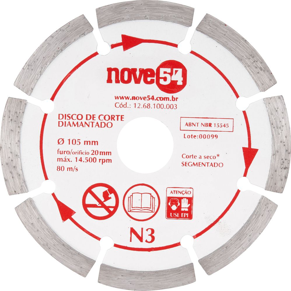Disco diamantado 105mm segmentado furo 20mm n3 - Nove54