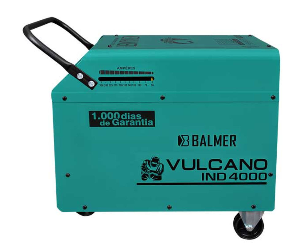 O transformador de soldagem a arco elétrico com eletrodo revestido em corrente alternada, modelo Vulcano IND 4000 proporciona uma excelente estabilidade e facilidade na abertura do arco, é ótimo para a soldagem da maioria dos eletrodos revestidos, incluindo os tipos E7018 e ferro fundido. Recomendamos ao usuário que busque a orientação técnica especializada para uma melhor identificação do processo, parâmetros e composição do conjunto de soldagem mais adequada a sua situação de trabalho. Materiais O transformador modelo Vulcano IND 4000 é recomendado para a soldagem dos seguintes materiais: Aço de baixo e médio teor de carbono Chapas galvanizadas Aços inoxidáveis Aços duros Ferro fundido Garantia: 1.000 dias Principais diferenciais É Portátil Painel com fácil visualização Gabinete em chapa metálica reforçada Conforme a norma técnica NBR 9378 Matéria-prima de alta qualidade – Ventilação forçada (mais eficiente) Componentes superdimensionados Transformador de potência com tripla isolação Chave liga/desliga tipo seccionador reforçada Pode ser ligado em 220/380/440V Bifásico A fonte de soldagem Vulcano IND 4000 é indicada para os mais variados tipos de metais, tais como, materiais ferrosos e suas ligas, tais como, Aço Carbono, Inoxidável, Ferro Fundido, etc.Garantia de 1000 Dias MODELO IND 4000* (antigo SUPER 300) Processo de Solda Eletrodo Revestido Tensão (V) 2 x 220/380/440 Frequência (Hz) 50/60 Pôtencia Máxima | Potência Nominal (kVA) 22 | 11 Corrente Máxima | Corrente Nominal (A) 102/57/48,5 | 47,5/28/24,2 Fator de Potência (cos ?) 0,46 (270 A) Tensão a Vazio | Tensão de Trabalho (V) 77 | 21,8 a 30,8 Regulagem de Corrente (Tipo) Núcleo Móvel Faixa de Corrente (A) 45 a 270 Ciclo de trabalho (A@%) 270@20 | 150@60 Exemplo de Utilização E6013 (mm) | E7018 (mm) 2,0 a 4,0 | 3,25 a 4,0 Ferro fundido (mm) 2,5 a 4,0 Grau de Proteção (Classe) IP 21 S Classe de Isolação Térmica B Ventilação (Tipo) Forçada Norma NBR 9378