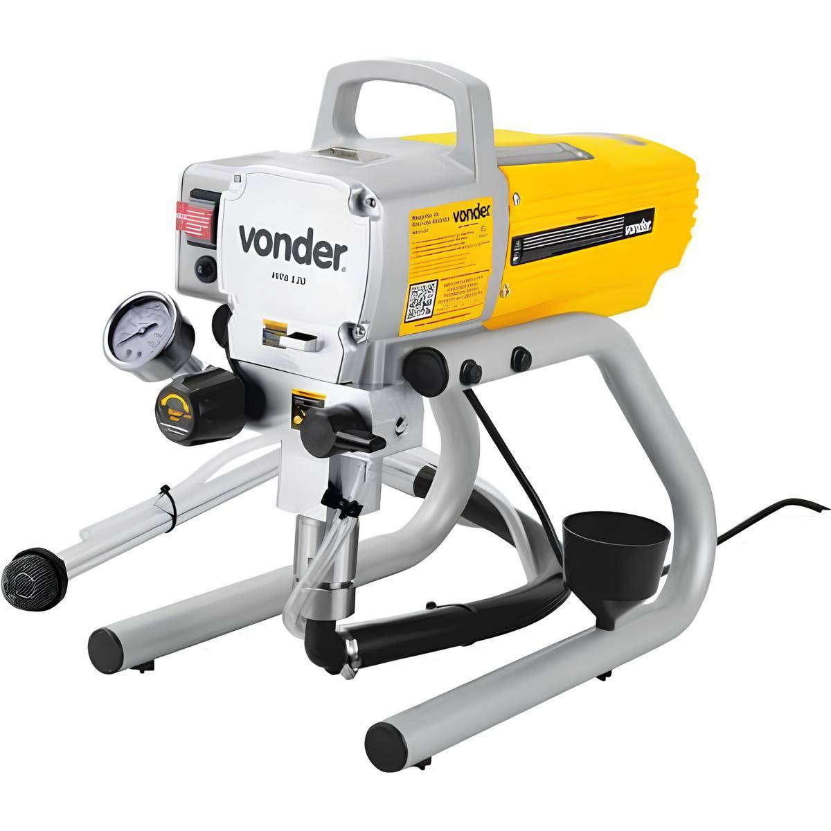 Maquina De Pintura Airless 1,2hp 3.000lbf Mono 220v Mpa 120Transforme sua experiência de pintura com a Máquina de Pintura Airless da Vonder! Ideal para aplicações profissionais e domésticas, este equipamento é perfeito para quem busca eficiência e qualidade. Com um motor potente de 1,2 hp e pressão máxima de 3.000 psi, você terá um desempenho excepcional em suas pinturas. A tecnologia Airless garante uma pulverização uniforme, economizando tinta e acelerando o processo de pintura. Seja para tintas látex, esmaltes à base sintética ou automotivas, esta máquina é a escolha certa. No entanto, não é indicada para tintas epóxi ou elastoméricas.A Vonder é uma marca reconhecida pela qualidade e durabilidade de seus produtos, garantindo que você tenha um equipamento confiável e de alta performance. Com um design robusto, a máquina possui pistão em aço carbono e engrenagem usinada com dentes helicoidais, proporcionando maior resistência, menor ruído e maior transmissão de torque. Isso se traduz em uma pintura mais rápida e com acabamento profissional.ESPECIFICAÇÕES TÉCNICAS:- Potência do motor: 1,2 hp / 900 W- Pressão máxima: 3.000 psi- Vazão da pistola: 2,2 Litros/min- Bico padrão: 517 (0.017”) - Leque de 25 cm a 30 mm- Rosca da conexão da mangueira: 1/4" NPSM- Comprimento da mangueira: 15 m- Comprimento do cordão elétrico: 2,50 m- Comprimento do tubo extensor: 457 mm- Material do tubo extensor: Alumínio- Peso: 15,5 kg- Tensão: 220 V~ monofásico- Frequência: 50 Hz/60 Hz- Volume do tanque: 1000 mLFUNÇÕES E CARACTERÍSTICAS:- Sistema de pulverização: Airless- Economiza tinta e acelera o processo de pintura- Pronta para uso com acessórios completos- Compatível com tintas imobiliárias à base de água e solvente, e tintas industriaisINSTRUÇÕES DE USO:1. Conecte a mangueira à máquina e à pistola de pintura.2. Encha o tanque com a tinta desejada.3. Ligue a máquina e ajuste a pressão conforme necessário.4. Inicie a pintura, mantendo a pistola a uma distância adequada da superfície.5. Após o uso, limpe a máquina e os acessórios para garantir a durabilidade.ORIGEM DO PRODUTO:- Fabricado pela Vonder, uma marca de confiança no mercado de ferramentas e equipamentos.ITENS INCLUSOS:- 1 Máquina de pintura- 1 Mangueira de 15 m- 1 Pistola de pintura (bico 517)- 1 Tubo extensor para pintura