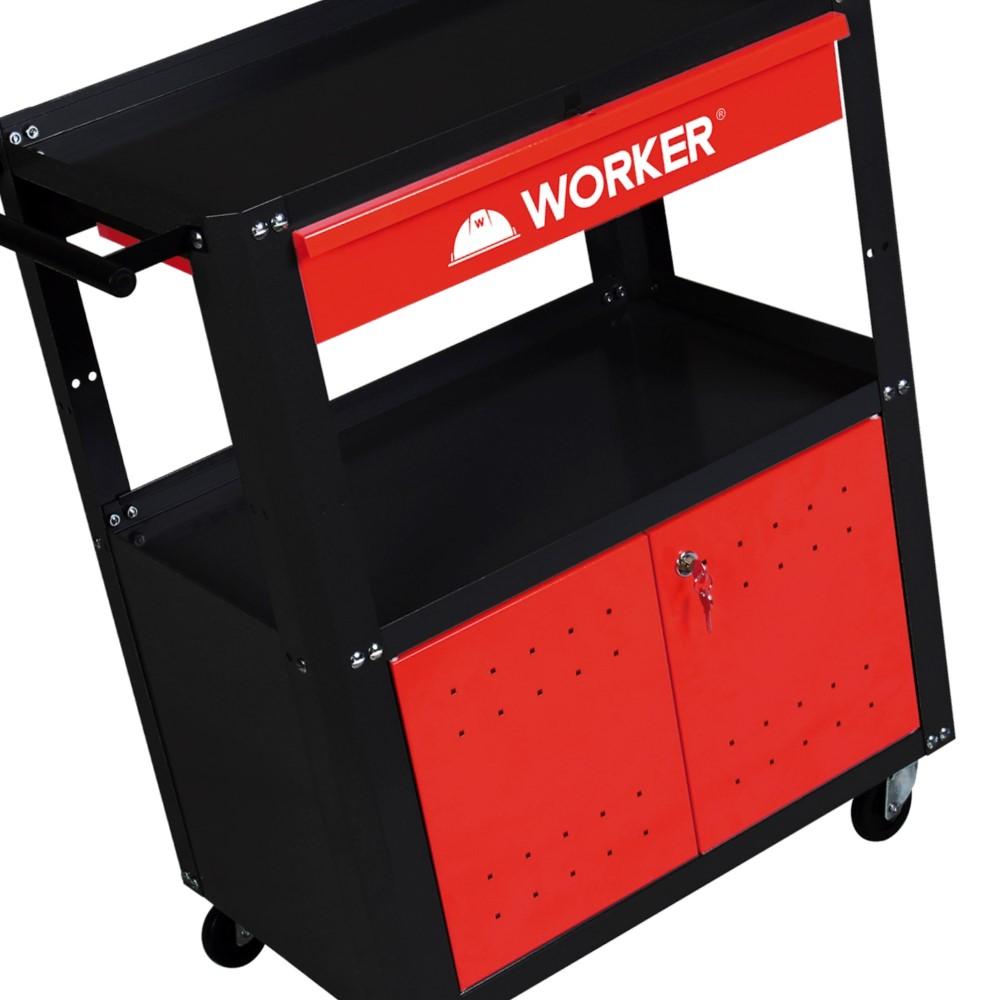 Carro Para Ferramentas Desmontável Com 2 Bandejas 1 Gaveta e 2 Portas Worker