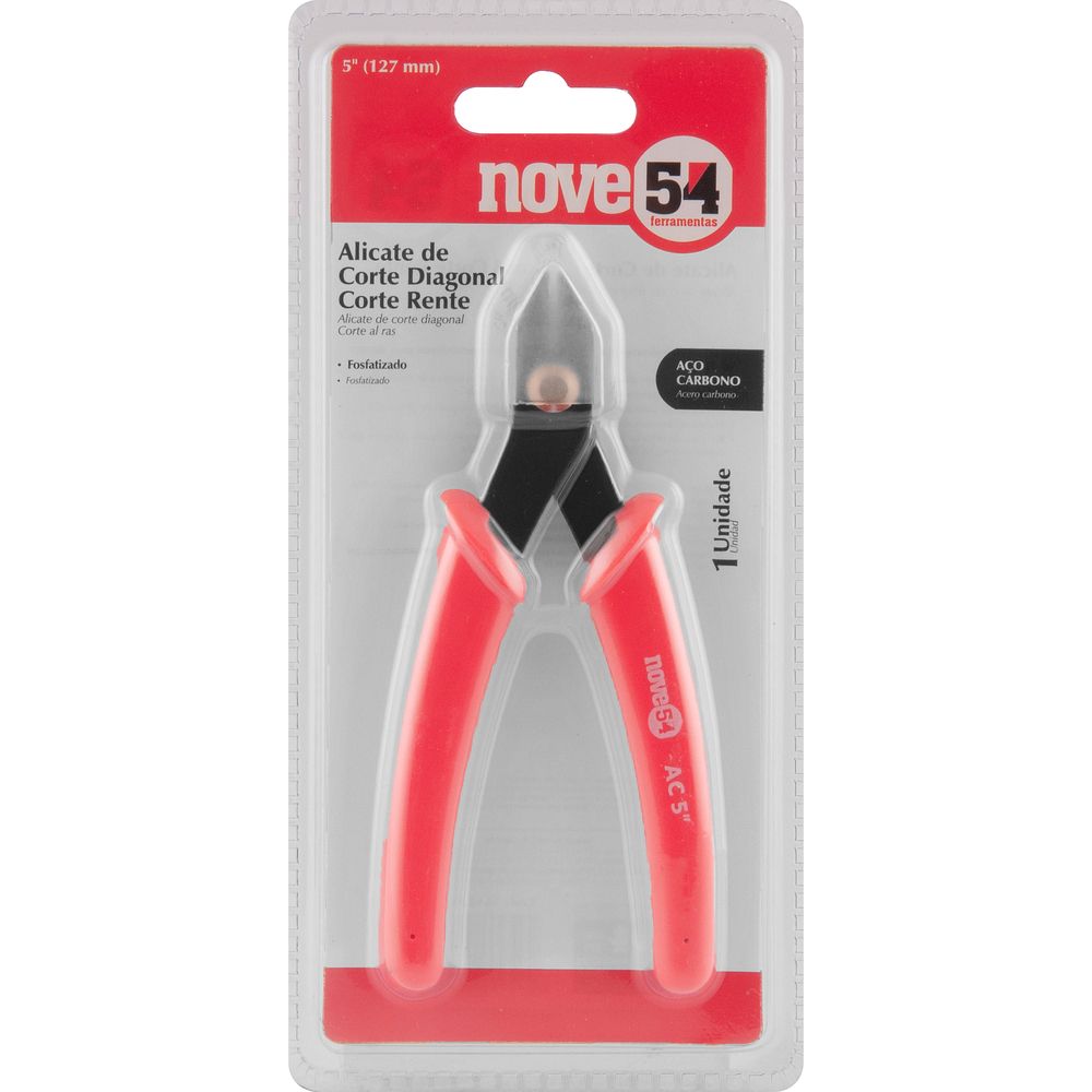 Alicate Corte Diagonal Rente 5 Nove54Descubra o Alicate Corte Diagonal Rente 5 da Nove54, uma ferramenta essencial para eletricistas e hobbistas que buscam precisão e eficiência em seus projetos. Este alicate é projetado para oferecer cortes precisos e rentes, ideal para trabalhos que exigem atenção aos detalhes. Com um acabamento fosfatizado, ele garante maior resistência à corrosão e oxidação, prolongando sua vida útil e mantendo sua aparência impecável por mais tempo.Fabricado com aço inoxidável de alta qualidade, o alicate possui um corpo robusto e durável, enquanto o punho de plástico proporciona um manuseio confortável e seguro. O design ergonômico do cabo, mesmo sem isolação, permite um uso prolongado sem causar desconforto, tornando-o perfeito para tarefas que exigem tempo e precisão.Este alicate é compatível com arames duros de até 0,8 mm e arames macios de até 1,3 mm, sendo uma ferramenta versátil para diversas aplicações, desde eletrônica até joalheria. A Nove54 é uma marca reconhecida por sua qualidade e inovação, garantindo que você tenha em mãos um produto confiável e eficiente.ESPECIFICAÇÕES TÉCNICAS:- Marca: Nove54- Tipo de corte: Diagonal- Material do punho: Plástico- Material: Aço inoxidável- Modelo: 3662050000- Material do corpo do alicate: Aço carbono- Comprimento total do alicate: 5" - 127 mm- Acabamento do alicate: Fosfatizado- Tipo do cabo do alicate: Sem isolação- Código universal de produto: 7893946558994FUNÇÕES E CARACTERÍSTICAS:- Corte preciso e rente- Ideal para eletricistas e hobbistas- Acabamento fosfatizado para resistência à corrosão- Design ergonômico para maior confortoINSTRUÇÕES DE USO:1. Utilize o alicate para cortar arames dentro das especificações de compatibilidade.2. Manuseie com cuidado para evitar danos ao material e ao alicate.3. Após o uso, limpe o alicate para remover resíduos e prolongar sua vida útil.ITENS INCLUSOS:- 1 AlicateGARANTIA:Este produto conta com garantia legal de 90 dias, cobrindo defeitos de fabricação. Para mais informações sobre a cobertura da garantia, consulte o manual do produto.