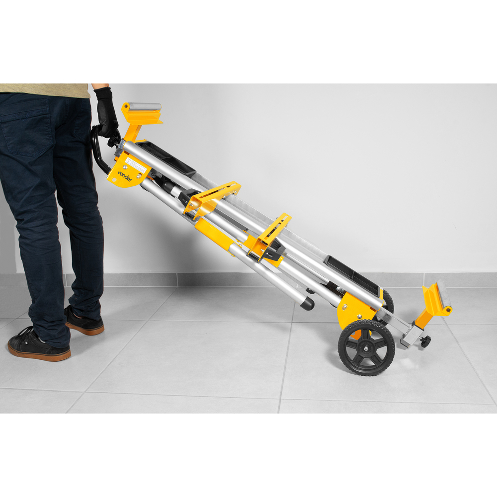 Conteúdo Embalagem:1 Bancada portátilDestaques e diferenciais:Possui estrutura tubular dobrável produzida em alumínio, tornando-a mais leve, e travas das pernas com alavanca de liberação rápida, deixando mais fácil o dobramento e desdobramento das pernas, além de sistema "clique e trave" na posição de operação. Conta também com rodas que facilitam a movimentação com a serra fixada e adaptadores de montagem universais, que se encaixam à maioria das serras. Possui, ainda, alças de transporte com liberação rápida acionadas por alavanca e suporte com rolos extensíveis e com batente do material, facilitando o corte.Aplicações e dicas de uso:Indicada para serras esquadrias de até 12", possui suporte ajustável que se adapta a maioria dos modelos de serras esquadrias.Características Técnicas:Material: Alumínio e aço Comprimento: 1730 mm Largura: 685,0 mm Altura: 970 mm Dimensões fechado (transporte): C X L X A (1270 mm x 470 mm x 280 mm) Capacidade de carga (kgf): 150 kgfGarantia:Garantia legal: 90 dias + Garantia contratual: 9 meses