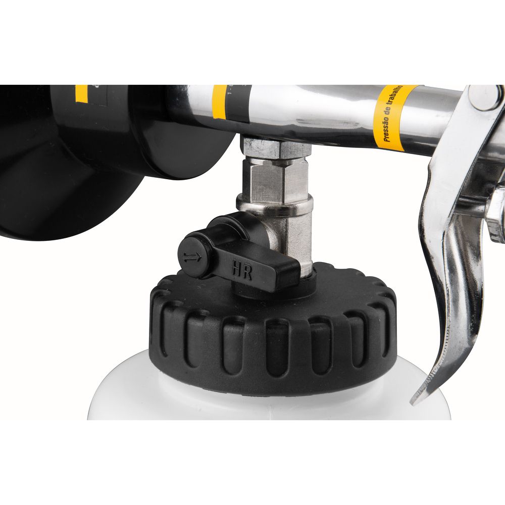 Conteúdo Embalagem:1 Pistola, acompanha: 2 bicos chatos, 1 bico de 60 mm de largura e 1 bico de 35 mm de larguraDestaques e diferenciais:Prática e leve, possui mecanismo que garante que a espuma não escorra contribuindo para melhor poder de ação e durabilidade. Conta com válvula de controle da saída de líquidos.Aplicações e dicas de uso:Indicada para limpeza automotiva, pois proporciona espuma intensa (floculação). Utilizada com compressor de ar. Compressor indicado: 10 PCM. Utilize apenas detergentes líquidos e neutros.Características Técnicas:Material da pistola: Alumínio Material da caneca da pistola: Plástico PE Capacidade da caneca: 1 Litro Conexão de entrada: Rosca fêmea 1/4" NPT Consumo de ar da pistola: 5,0 pcm (pe³/min) Pressão máxima de trabalho (PSI): 133 lbf/pol² - 9,2 bar - 0,92 Mpa Pressão mínima de trabalho: 87 lbf/pol² - 6 bar - 0,6 MpaGarantia:Garantia legal: 90 dias + Garantia contratual: 3 meses
