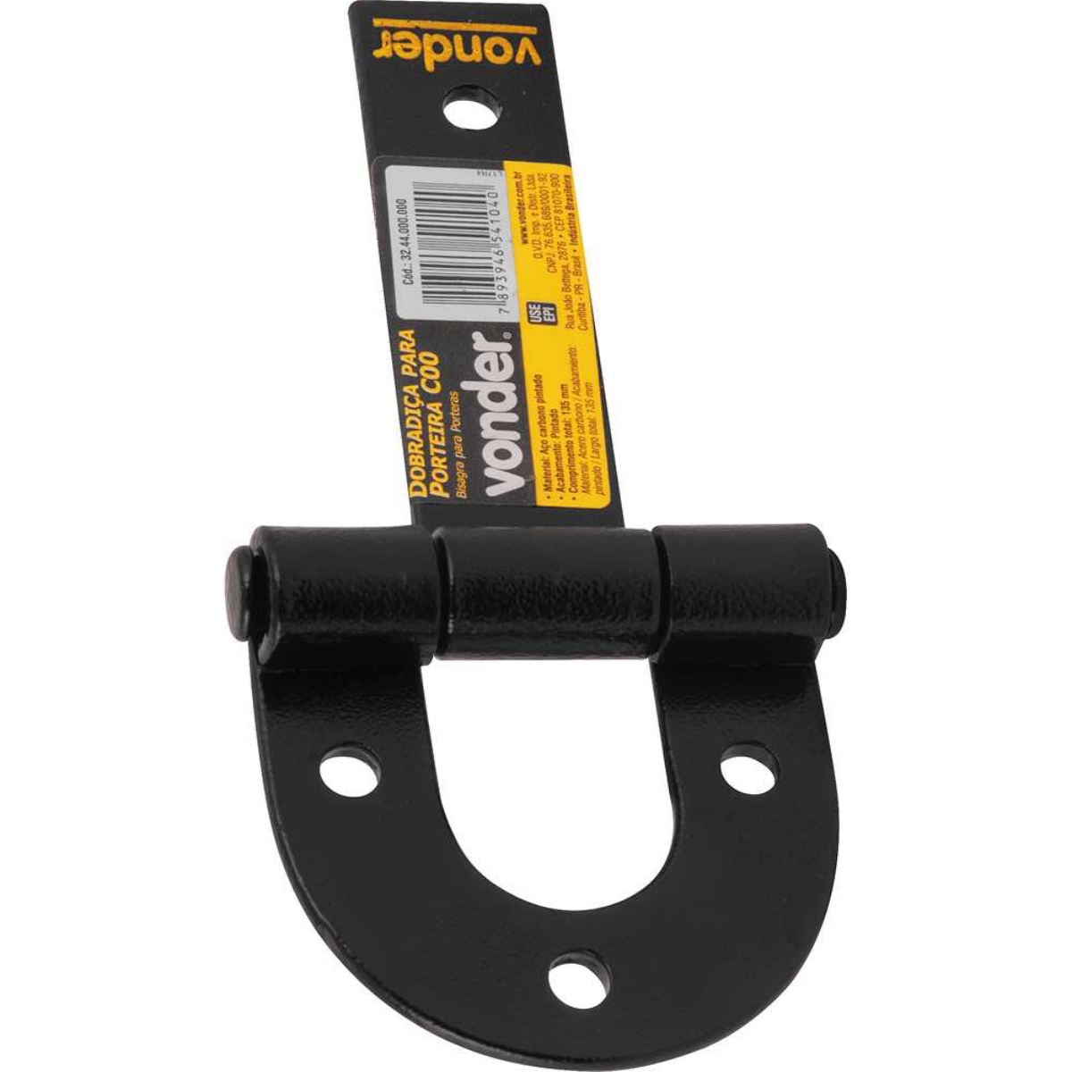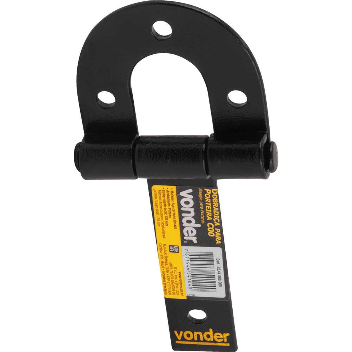 Conteúdo da Embalagem:1 Dobradiça para porteiraDescrição:Dobradiça para porteira C00 VONDERAplicações e dicas de uso:Indicada para porteiras, portões, portas, entre outrosDestaques e diferenciais:Prática e fácil de instalar, possui estrutura reforçadaCaracterísticas Técnicas:Material/acabamento da dobradiça : Aço pintado Tamanho/referência da dobradiça para porteira: C - 0 Comprimento total da dobradiça para porteira: 135,0 mmGarantia legal: 90 dias