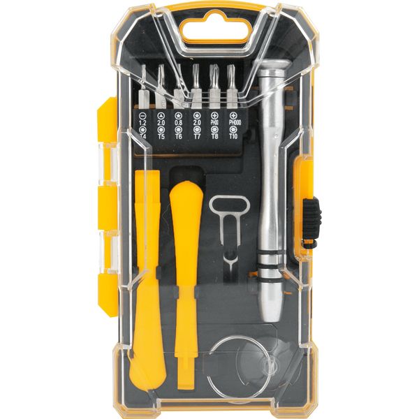 Kit de Chaves de Precisão Vonder com 17 Peças para Manutenção de Celulares e Relógios Garanta a precisão que seus projetos de eletrônica exigem com o Jogo de Chaves de Precisão Vonder, composto por 17 peças profissionais. Projetado especificamente para manutenção de celulares, smartphones, relógios, notebooks e outros dispositivos eletrônicos de miniaturização, este kit oferece a versatilidade necessária para técnicos e entusiastas. O destaque fica por conta da alta durabilidade: as 11 pontas (bits) são fabricadas em aço cromo vanádio, material que garante resistência superior à corrosão e desgaste, enquanto o cabo adaptador em alumínio proporcione leveza e conforto durante o uso prolongado. Com configurações que incluem bits hexalobulares (T4 a T10), Phillips, estrela e fenda, ele cobre a maioria dos parafusos encontrados em aparelhos modernos. Além disso, o kit conta com uma espátula para abertura de capas, ventosa para manipulação de telas e uma agulha especial para remover chips SIM, tornando-se uma solução completa para eletrônica de precisão. O armazenamento é facilitado pelo estojo plástico organizado, que protege as peças e garante portabilidade. Especificações Número de peças no jogo: 17 peças Material dos bits: Aço cromo vanádio (alta resistência) Material do cabo adaptador: Alumínio Diâmetro do encaixe do adaptador: 4,0 mm Composição das pontas: 6 bits hexalobular (T4, T5, T6, T7, T8, T10), 2 bits Phillips (PH00, PH000), 2 bits estrela (0,8 mm e 2,0 mm), 1 bit três pontas (2,0 mm) e 1 bit fenda (1,2 mm) Ferramentas auxiliares: 1 espátula 10 mm, 1 espátula 6 mm, 1 ventosa 25 mm e 1 agulha para remover chip Garantia legal: 90 dias Itens Inclusos 1 Cabo adaptador em alumínio (encaixe 4,0 mm) 1 Espátula 10 mm 1 Espátula 6 mm 1 Ventosa Ø 25 mm 1 Agulha para remover chip 6 Bits hexalobular (T4, T5, T6, T7, T8, T10) 2 Bits Phillips (PH00, PH000) 2 Bits estrela (0,8 mm e 2,0 mm) 1 Bit três pontas (2,0 mm) 1 Bit fenda (1,2 mm) Perguntas Frequentes (FAQ) Pergunta: Este kit serve para abrir celulares e notebooks?Resposta: Sim, o jogo foi desenvolvido para manutenção de eletrônicos. Ele inclui bits Phillips, hexalobulares e estrela compatíveis com a maioria dos parafusos utilizados em smartphones, tablets e notebooks. Pergunta: Os materiais são resistentes?Resposta: Sim, as pontas são feitas de aço cromo vanádio, que é altamente resistente à oxidação e torção, e o cabo adaptador é de alumínio leve e durável. Pergunta: O que exatamente está inclusos na embalagem?Resposta: O produto contém um estojo plástico organizador, 11 bits de precisão, um cabo adaptador, duas espátulas, uma ventosa e uma agulha para chip.