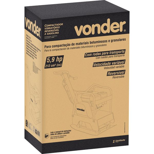 Possui alta eficiência e fácil manuseio, sendo reversível, com velocidade variável. Conta também com rodas para transporte.Indicado para compactação de materiais betuminosos (asfalto) e granulares (brita, cascalho, pedra, entre outros). Utilizado na compactação e manutenção de estradas, alinhamento de paver, terraplanagem, paisagismo, entre outros.Garantia legal: 90 dias + Garantia contratual 3 mesesTipo de motor a combustão:4 tempos - refrigerado a ar Sistema de partida: Manual retrátilPotência: 7,0 hpForça de impacto: 25 kNProfundidade de compactação: 30 cmNúmero de vibrações por minuto (vpm): 4.300/minVelocidade de deslocamento (sem carga): 24 m/minRendimento aproximado: 500 m²/hNível de ruído: Nível de potência sonora medido: 105 dB / Nível de potência sonora garantido: 108 dB / Incerteza: 3 dBCapacidade do tanque de combustível: 3,6 litrosCombustível: Gasolina comumCapacidade de óleo no cárter: 600 mlDimensões (C x L x A): 750 mm x 400 mm x 930 mmDimensões da placa: 630 mm x 400 mmMassa aproximada (peso): 126,5 kg