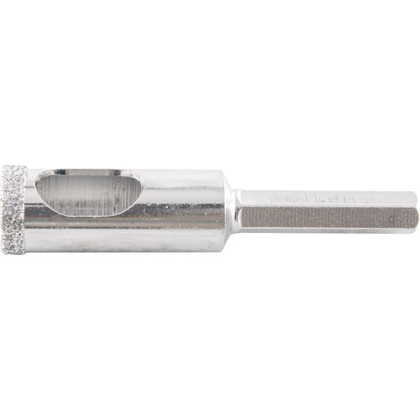 Ref. Fornecedor:3617000014Conteúdo da Embalagem:1 Serra copo diamantada refrigerada com hasteAplicações e dicas de uso:Especialmente indicada para fazer furos (corte refrigerado com água) em porcelanato, cerâmica, granito e mármore. Rotação máxima (rpm): 2.400/min.Destaques e diferenciais:Possui corpo reforçado em aço, aresta de corte com revestimento diamantado e haste sextavadaDetalhes Técnicos:Diâmetro da serra copo: 14 mm Altura útil aproximada da serra copo: 35 mm Altura da camada de diamante: 4,0 mm Diâmetro da haste: 6,3 mm Diâmetro do encaixe da haste: N/A Comprimento total da haste: 30 mm Material da serra copo: Corpo em aço carbono e ponta diamantadaGarantia:Garantia legal: 90 dias