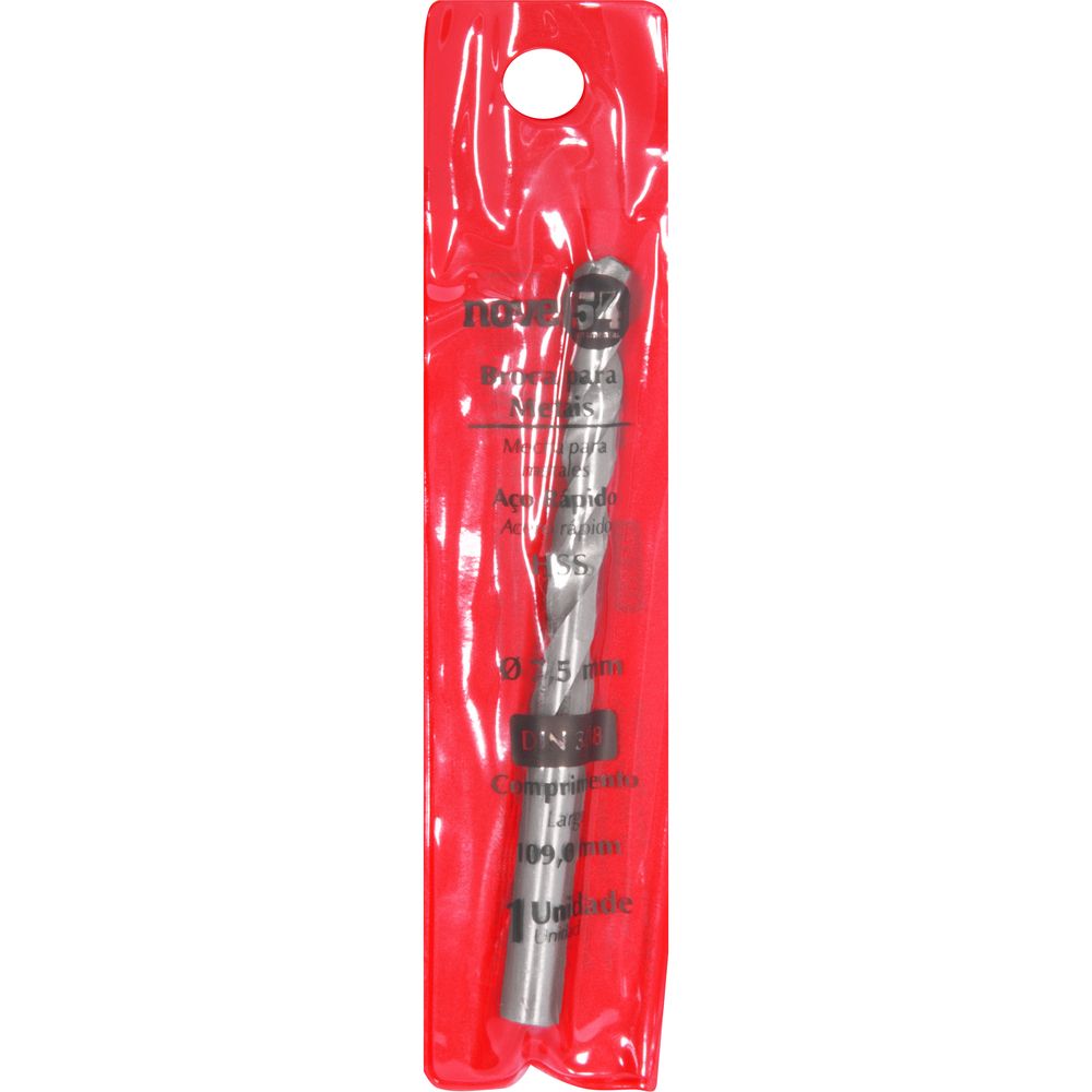 Broca de Aço Rápido 7,5 mm DIN 338 Hss Encartelada Nove54