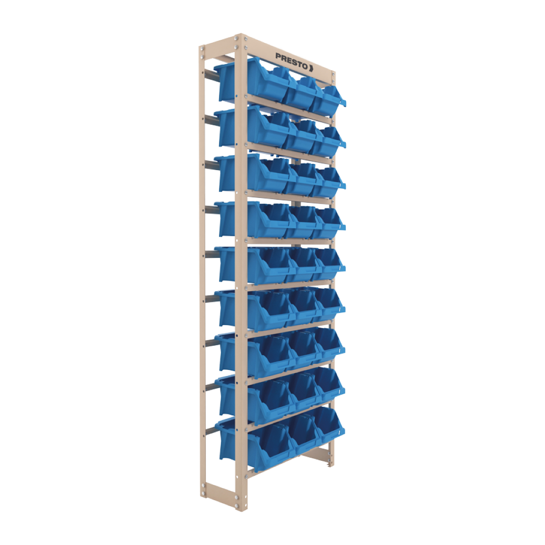 Ref. Fornecedor: 93008 Marca: Presto Kit Estante Gaveteiro Organizador 27/5 Azul em aço para encaixar gavetas plásticas, possibilitando diversos tipos de armazenagem. O Kit Estante Gaveteiro é ideal para organizar parafusos e outras peças pequenas, pois facilita o acesso rápido a itens necessários para realizar o trabalho de maneira mais ágil e organizada. Estrutura em aço e 27 Gavetas Empilháveis n° 5 inclusas. Vantagens Produto vendido desmontado;Gavetas removíveis que encaixam e empilham;Ocupa 70% menos espaço que as convencionais;Menos espaço no estoque e menor custo de frete;Fácil de transportar em veículo;Fácil de expor no Show room;Tratamento químico antiferruginoso fosfatizantePintura eletrostática a pó;Gavetas com porta etiquetas;Não tem EPI. Medidas Largura: 53,0 cm Altura: 1.500 m Profundidade: 27,0 cm Peso: 12,112 kg Carga Máxima: 81 Kg distribuídos Espessura: Estrutura - 1,2mm