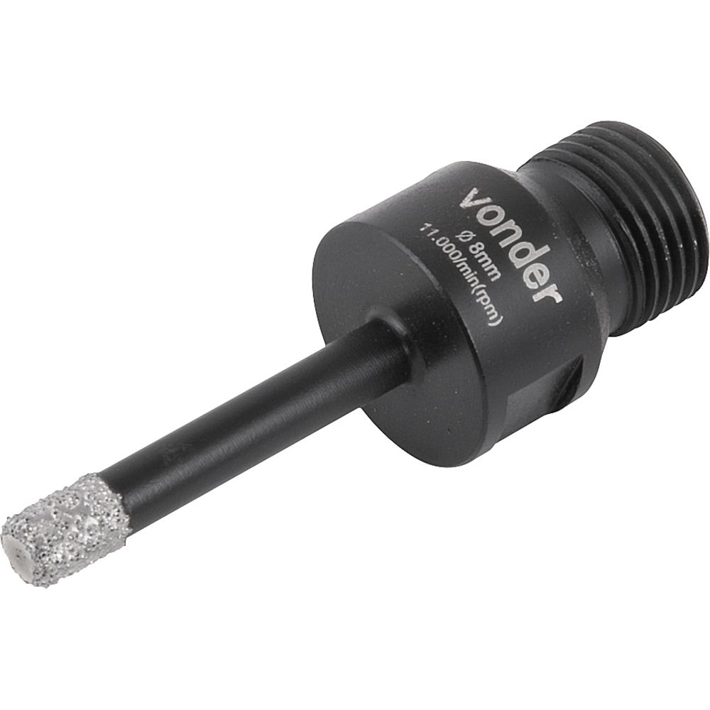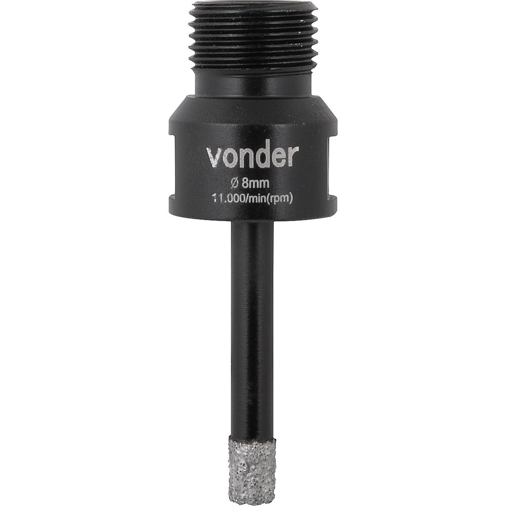 Ref. Fornecedor: 3617200008Marca: VonderConteúdo Embalagem:1 Serra copoDestaques e diferenciais:Corte a seco. Permite a realização de furos com grandes diâmetros em tempo reduzidoAplicações e dicas de uso:Serra copo diamantada para uso em telhas, tijolos, cerâmicas, azulejos, granito, mármore. Indicada para uso em esmerilhadeira com rosca interna M14 e rosca externa 1/2" BSP para máquinas estacionárias em marmorariaCaracterísticas Técnicas:Diâmetro da serra copo: 8 mm Altura útil aproximada da serra copo: 47 mm Comprimento total: 80,0 Diâmetro e tipo da rosca: M14 Rotação máxima (rpm): 11000 /min