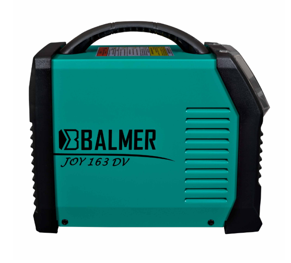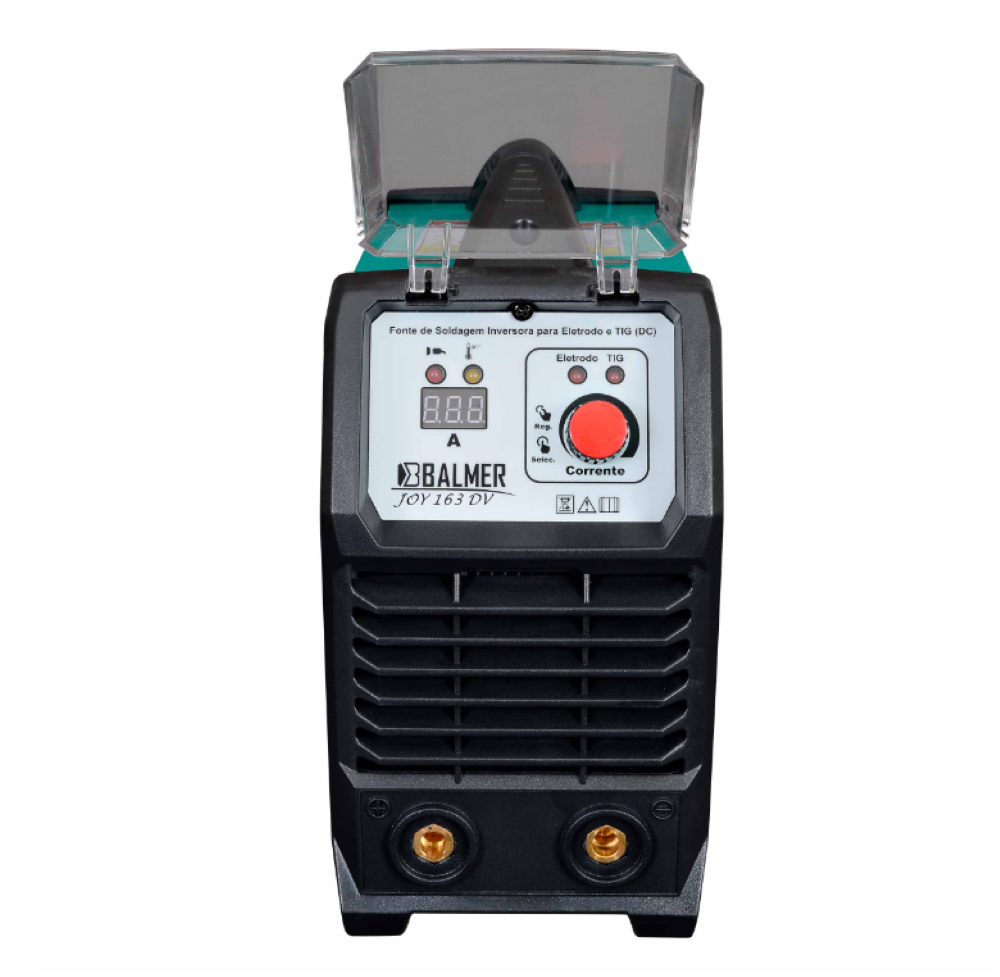 Cod. do Fornecedor: 30179540Marca: BalmerConteúdo da embalagem: 1 Inversor 160A Joy163 Dv 110/220 Não é possível seu uso para soldagem de alumínio.Em Eletrodo Revestido: Hot start, Arc Force e Anti stickObs.: Não é recomendada para soldagem de eletrodos Celulósicos E6010. A fonte de soldagem para eletrodo revestido e TIG (DC) JOY163 DV adota última tecnologia em modulação PWM (Pulse Width Modulation) e módulos de potência com IGBTs.Recursos para TIG (DC) - Materiais ferros e InoxAbertura do arco de solda com "Lift Arc"Composição1 Fonte de Soldagem inversora modelo JOY 163 DV1 Garra negativa1 Porta eletrodo1 Cabos de solda com engate rápido1 Manual de instruções1 Certificado de GarantiaPrincipais diferenciaisInversora para soldagem Eletrodo Revestido e TIG DC. Corrente de soldagem de 10 a 160A. Eletrodo:Ciclo de trabalho: 130A(10%) (127V) / 160A(35%) (220V)Ciclo de trabalho: 40A(100%) (127V) / 90A(100%) (220V)Tensão a vazio (V) 78 (127V) 66 (220) Tig:Ciclo de trabalho: 130A(15%) (127V) / 160A(60%) (220V)Ciclo de trabalho: 50A(100%) (127V) / 130A(100%) (220V) Tensão de entrada: Seleção automática 127/220V MonofásicoFrequência(Hz): 50/60Potência Máxima (kVA): 5Tensão a vazio (V) 14Refrigeração: ForçadaClasse de proteção: IP23Norma IEC 60974-1:2012Classe de isolação: HDimensões: 130X280X260mmGarantia de 1 AnoPeso (Kg) 5
