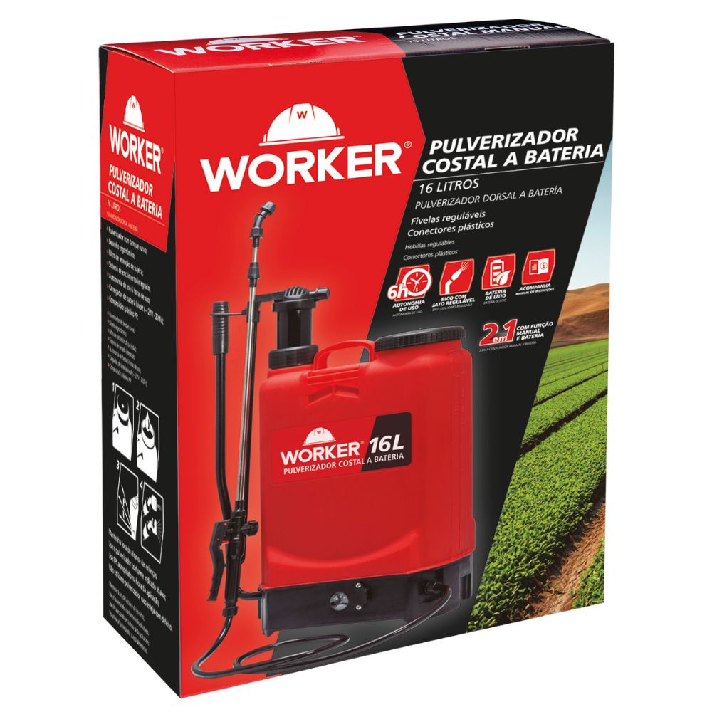 Pulverizador Costal 16 Litros com Bateria: Proteção e Praticidade para Seu Dia a Dia Mantenha seu ambiente livre de mosquitos, pernilongos, baratas e outros insetos indesejados com o Pulverizador Costal Worker de 16 Litros. Ideal para uso doméstico, jardins, hortas e até mesmo para sanitização de ambientes, este pulverizador oferece uma solução eficiente e prática para o controle de pragas e a umidificação de plantas. Sua bateria com autonomia de 6 horas garante longos períodos de uso sem a necessidade de recarga constante, tornando-o perfeito para áreas extensas. O design ergonômico e a alça ajustável proporcionam conforto durante o uso, enquanto o gatilho com trava evita a fadiga da mão. Com 4 tipos de bicos inclusos, você pode ajustar a aplicação de acordo com a sua necessidade, seja para pulverizar inseticidas, herbicidas, pesticidas, fungicidas, carrapaticidas ou adubos foliares. O reservatório de 16 litros e a vazão de 3,1 L/min garantem uma cobertura ampla e eficiente, otimizando seu tempo e esforço. Invista na sua saúde e bem-estar com este pulverizador costal de alta qualidade. Especificações Reservatório: 16 Litros Vazão: 3,1 L/min Composição: Plástico PP Autonomia da bateria: 6 horas Itens Inclusos 1 Pulverizador Costal 16 Litros Bateria Worker 1 Carregador bivolt 1 Alça para transporte ajustável Perguntas Frequentes (FAQ) Pergunta: Qual a autonomia da bateria?Resposta: A bateria possui autonomia de 6 horas de uso contínuo. Pergunta: Quais os tipos de bicos inclusos?Resposta: São inclusos 4 tipos de bicos para adequar a aplicação às suas necessidades. Pergunta: Qual o período de garantia do produto?Resposta: O produto possui garantia de 3 meses. Garantia legal: 90 dias