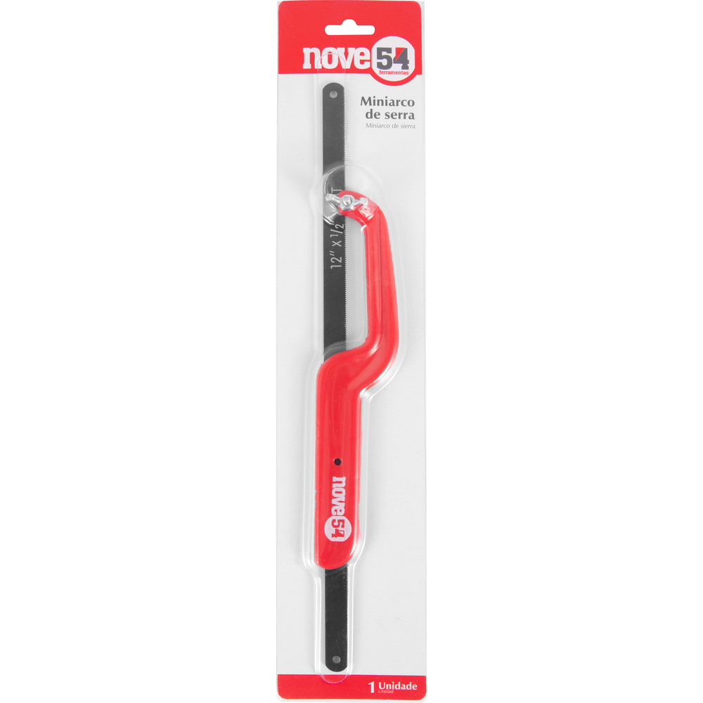 Ref. Fornecedor 3065000250Marca: Nove54Conteúdo da Embalagem:1 Miniarco de serra. Acompanha: 1 lâmina de serraDestaques e diferenciais:Proporciona praticidade para corte em locais de difícil acesso onde o arco de serra convencional não pode ser utilizado. Permite o uso de lâminas de serra novas de 8?, 10?, 12? ou quebradas, com comprimento mínimo de 90 mm.Aplicações e dicas de uso:Indicado para metais, plásticos, madeiras e derivados, utilizando a lâmina adequada. Acompanha lâmina de serra de aço carbono para corte de madeira e PVC. Para corte de metais, será necessário adquirir lâmina de aço rápido. Ideal para trabalhos leves de corte.Características Técnicas:Material da estrutura do arco de serra: Plástico