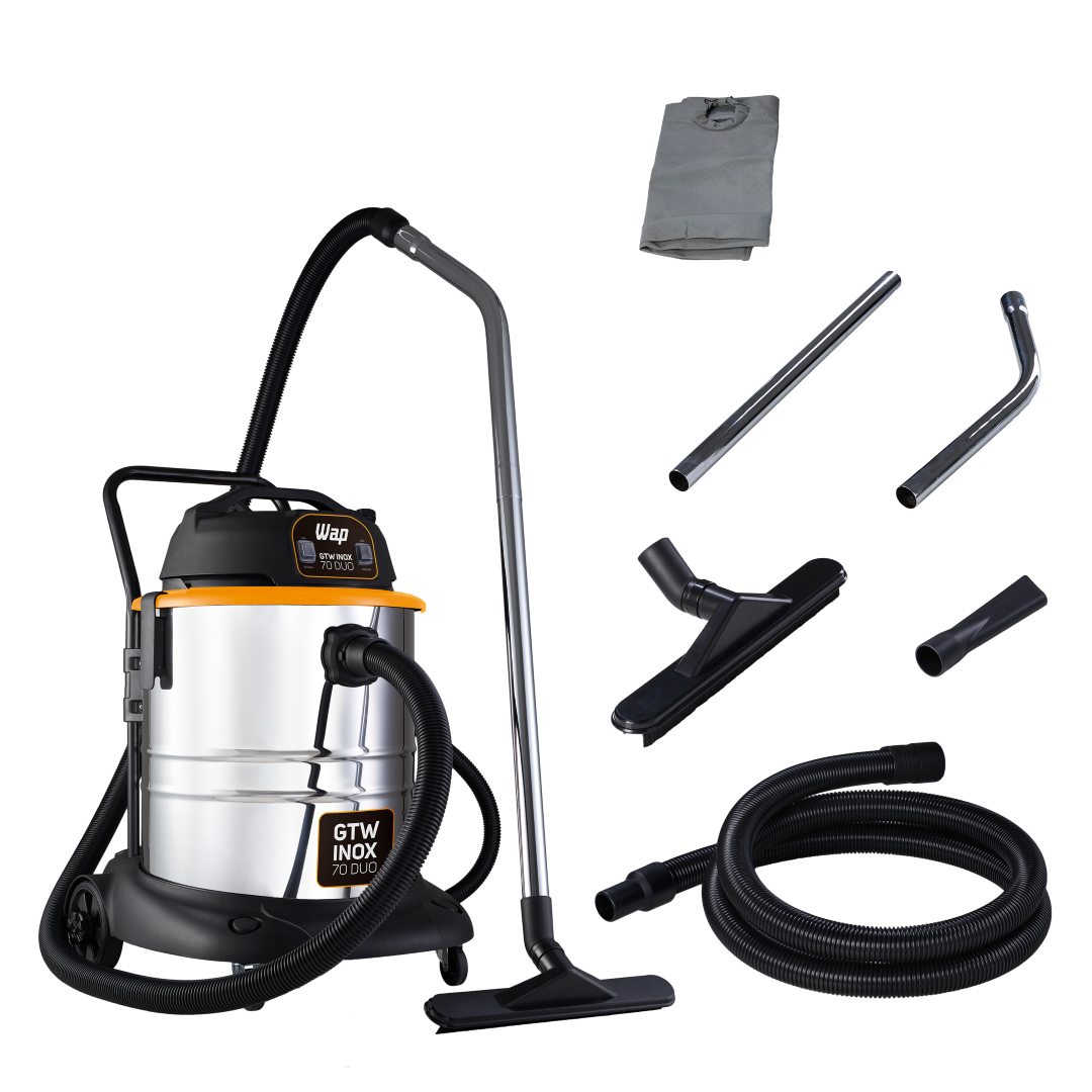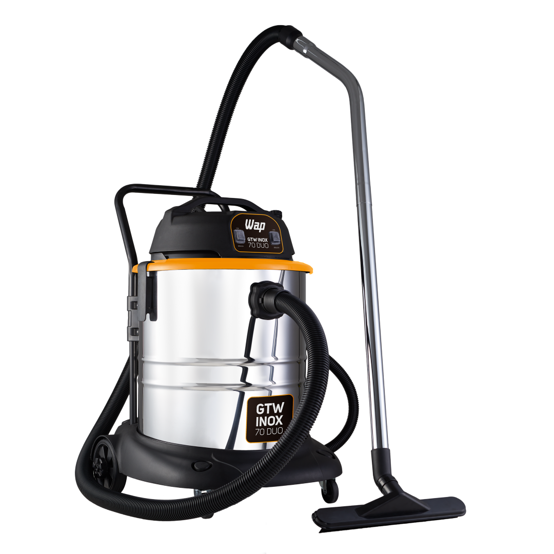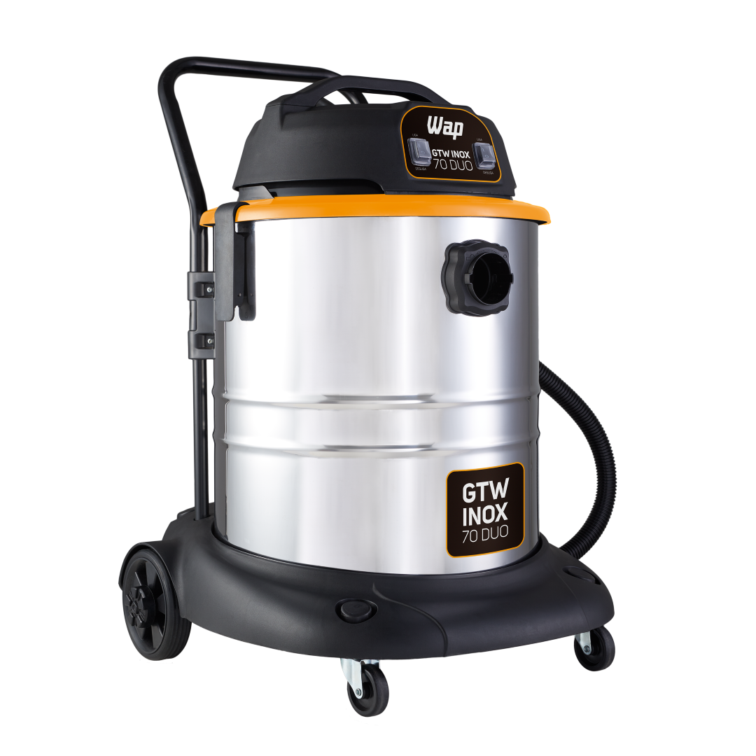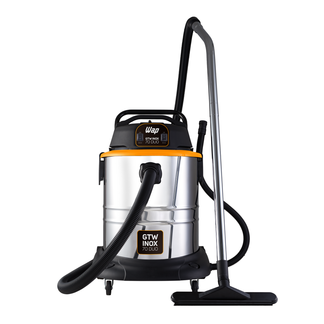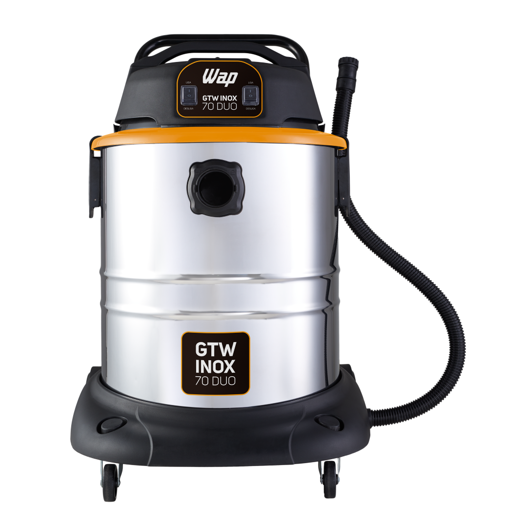 Para quem procura facilidade e FORÇA BRUTA na hora da faxina, está na hora de conhecer o Aspirador WAP GTW INOX 70 DUO. O Lançamento da WAP é o mais robusto e superior aspirador da categoria, tenha o resultado de limpeza profissional no seu dia a dia.O poderoso Aspirador WAP GTW INOX 70 DUO possui dois motores com potência de até 2800 W, garantindo máxima eficácia na aspiração de sólidos e líquidos.Com reservatório de volume total de 70 litros, tendo capacidade útil para sólidos de 41 litros e capacidade útil para líquidos de 34,5 litros. Recipiente inox, que proporciona maior resistência e um lindo design. O Aspirador WAP GTW INOX 70 DUO é o mais indicado para trabalhos pesados em comércios como, lava cars, indústrias e pós obras, recolhendo com eficiência todos os resíduos.Tenha autonomia e segurança para ir e vir em áreas internas e externas com 4 rodas para transporte, cabo elétrico 4,5 metros, 2 travas do cabeçote, suporte para acessórios e bóia de água para segurança do motor. Uma opção inteligente para quem quer força com praticidade.O Aspirador WAP GTW INOX 70 DUO é o mais potente aspirador da família GTW e também a opção ideal para aspirar com facilidade áreas que exigem grandes esforços.Robusto e ágil, é equipado com mangueira de 3 metros, mais cabos extensores para alcançar inclusive as regiões mais distantes.Todas as funcionalidades com força POWER! Dentre os acessórios que acompanham estão bico canto, bico múltiplo e bico escova que permitem aspirar pisos, tapetes, carpetes, estofados e outros.A usabilidade é garantida com o fácil esvaziamento pela mangueira dreno. Limpeza leve ou pesada, tenha mais produtividade com o Aspirador WAP GTW INOX 70 DUO.DADOS TÉCNICOS:POTÊNCIA ELÉTRICA: 2000W (127V) - 2800W (220V)TENSÃO: 127V ou 220V (Escolher no momento da compra)FREQUÊNCIA 60 HzMOTOR: Universal (127V - 2 Motores de 1000W) (220V - 2 Motores de 1400W)VOLUME TOTAL DO RECIPIENTE: 70 LCAPACIDADE ÚTIL DO RECIPIENTE (líquidos/sólidos): 34,5 L / 41 LVÁCUO: 200 mbarTIPO DE FILTRO: HEPA; Pano LavávelNÍVEIS DE FILTRAGEM: 2ASPIRA ÁGUA: SimVOLUME TOTAL DO RECIPIENTE: 70 LCAPACIDADE ÚTIL DO RECIPIENTE (líquidos/sólidos): 34,5 L / 41 LCAPACIDADE ÚTIL PARA SÓLIDOS: 41 LCOR: Inox com Preto e AmareloDIMENSÕES CABO ELÉTRICO: 4,5mDIMENSÕES MANGUEIRA: 3mPESO LÍQUIDO:15,2 kgPESO BRUTO: 20 kgCUBAGEM: 0,2619 m³EMPILHAMENTO MÁXIMO: 3DIMENSÕES DO PRODUTO (CxLxA): 61 x57 x 83 cmDIMENSÕES DA EMBALAGEM (CxLxA): 63x 55x 74,6 cmGARANTIA: 01 ANO (3 meses de garantia legal e mais 9 meses de garantia especial concedida pelo fabricante)CONTEÚDO DA EMBALAGEM: Aspirador de Pó GTW Inox 70 DUO + Acessórios + Manual de Instruções.