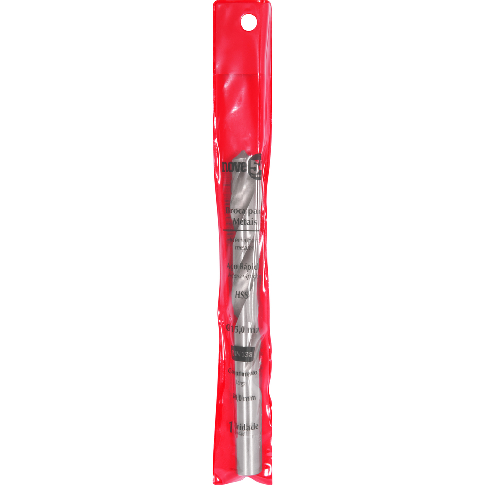 Broca de Aço Rápido 15,0 mm DIN338 Hss Encartelada Nove54